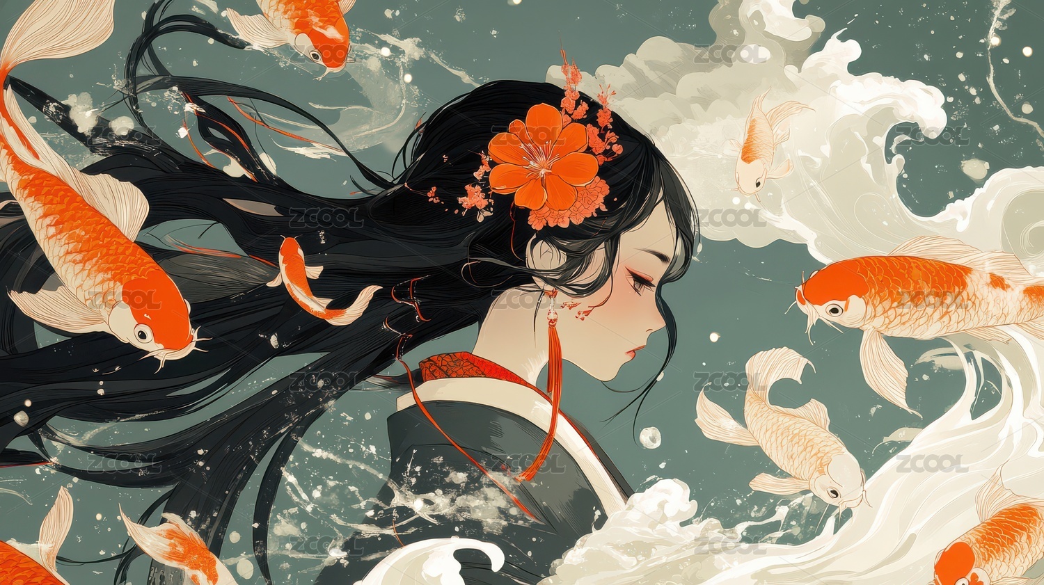 国风,中国风,水墨,国画,水彩画,女生,女性,户外,自然,风景