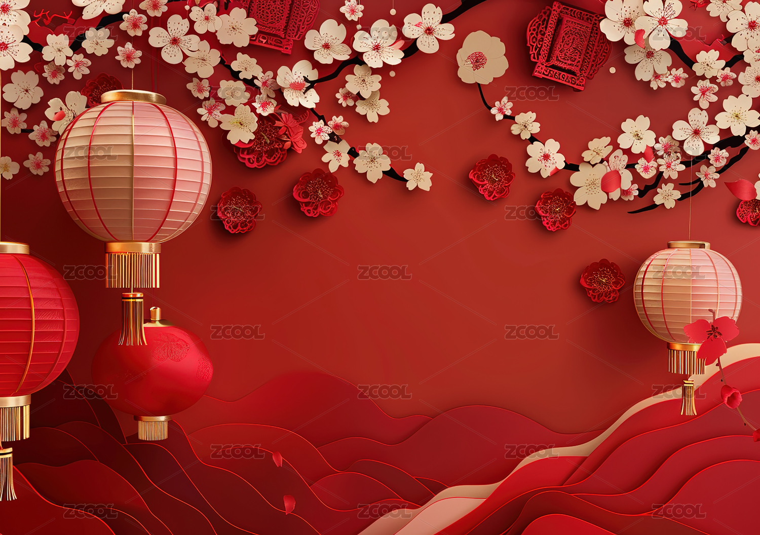 云伴灯笼红幕背景
