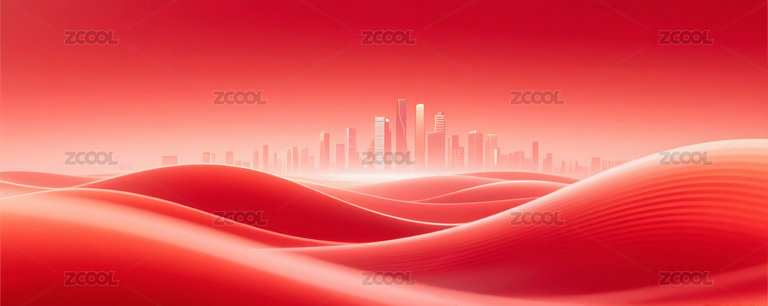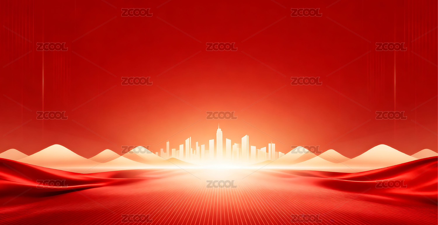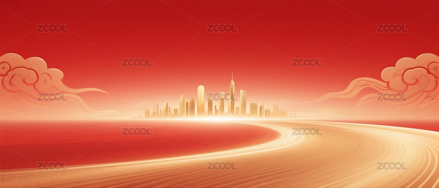 红金色绸缎布料城市建筑天际线商务庆典背景