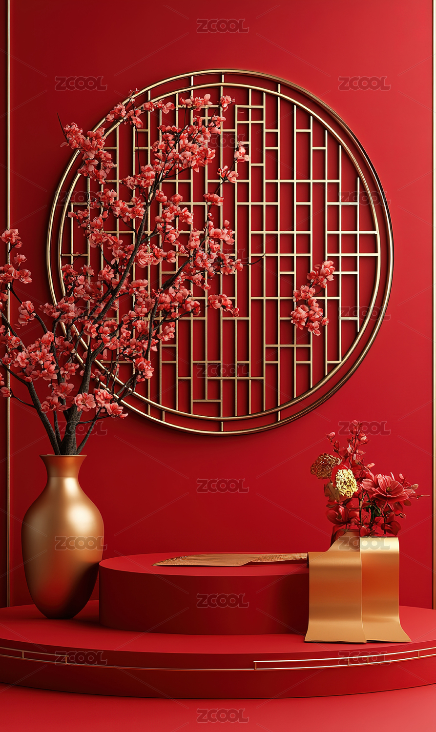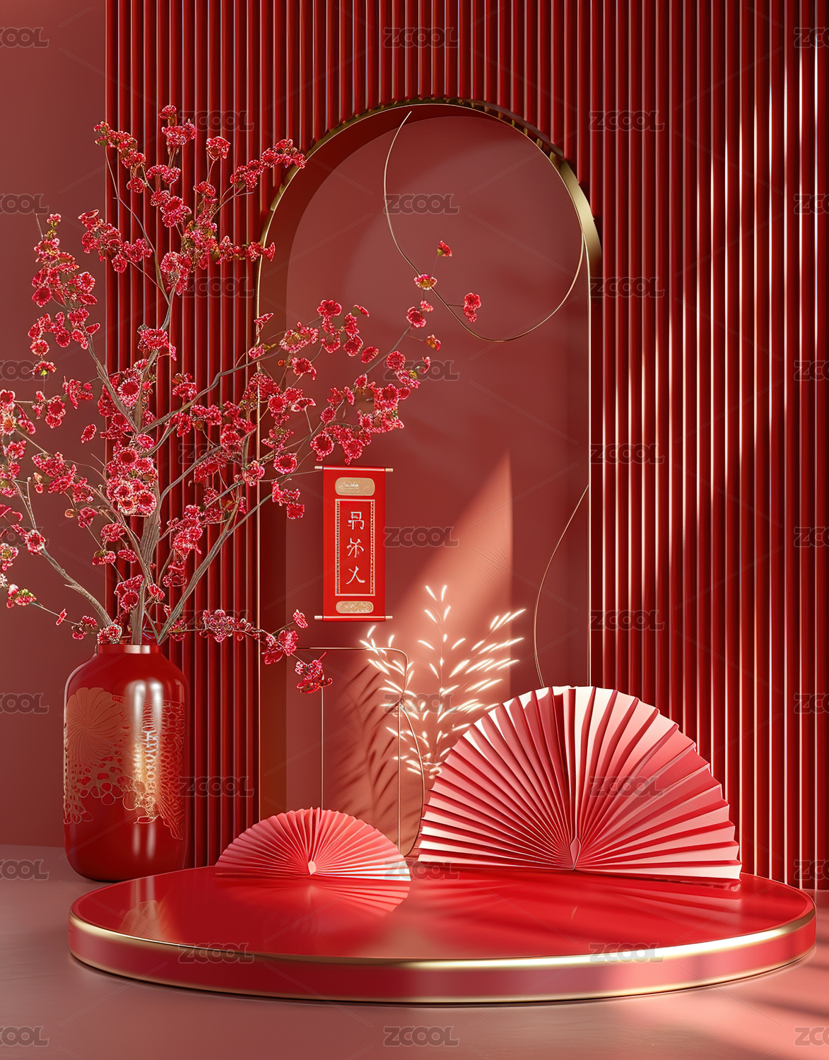 无人,促销,产品展台,三维图形,新年,活动,装饰,国风,节日