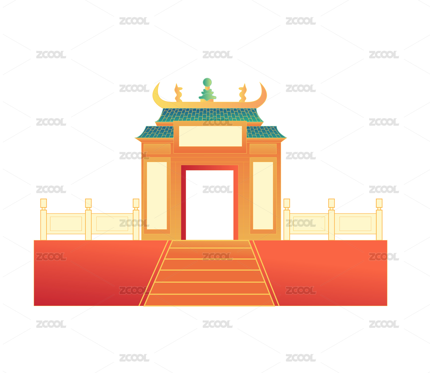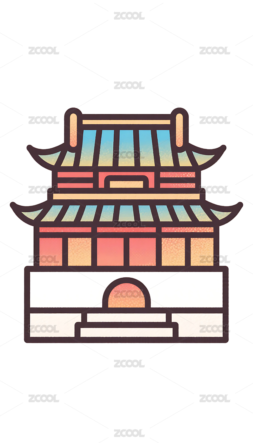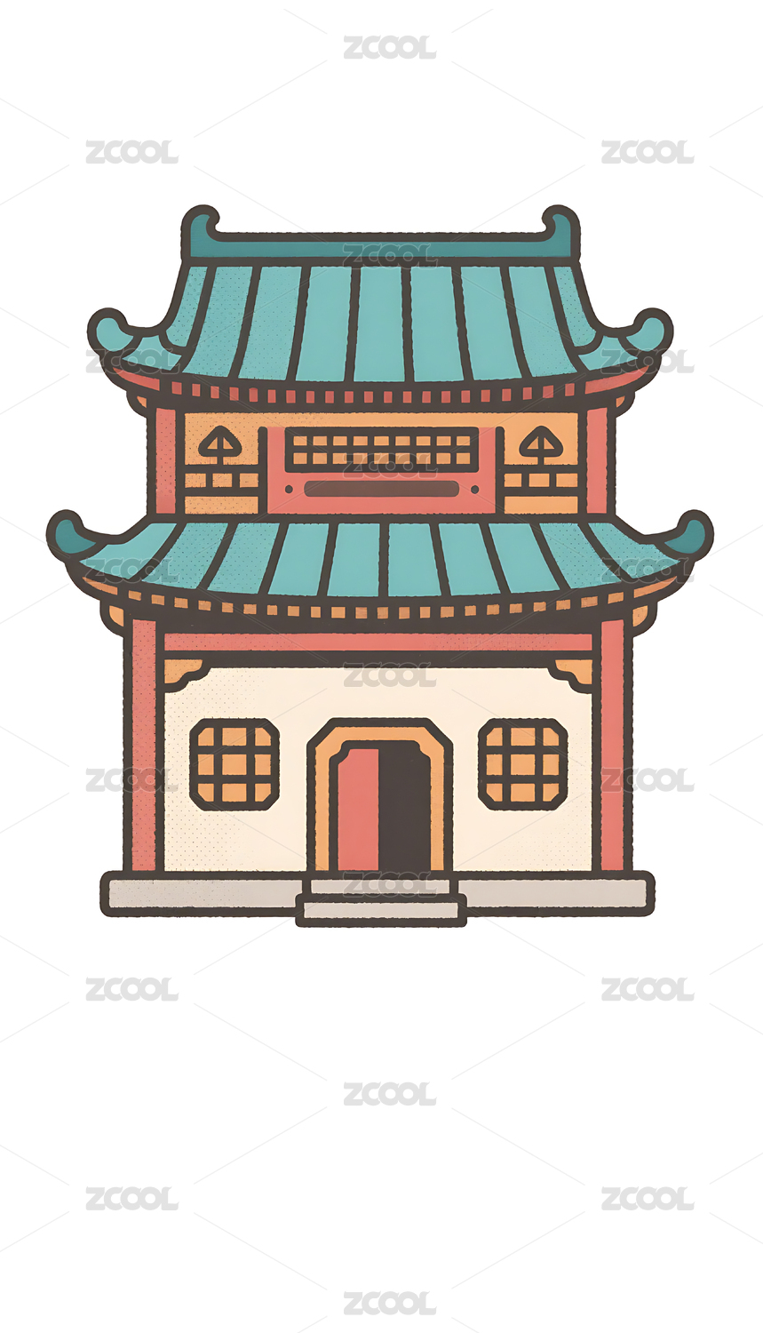 澳门中国风复古地标妈祖阁旅游矢量插画建筑