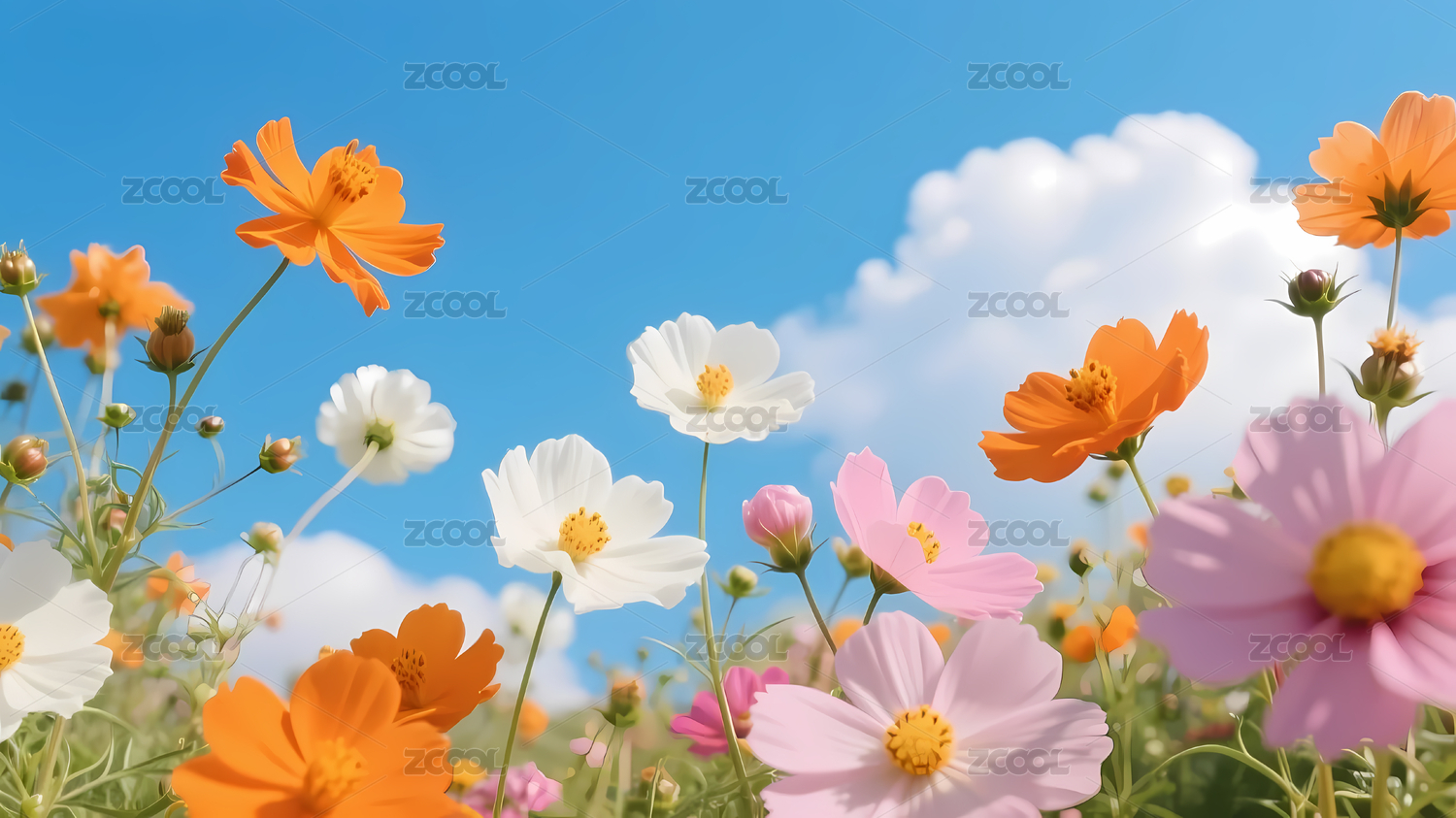 蓝天白云下的花海