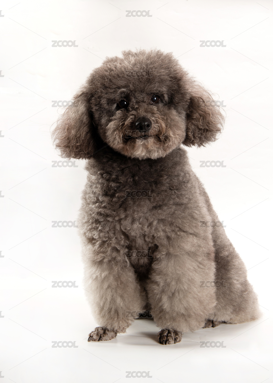 白色背景上的宠物灰色贵宾犬