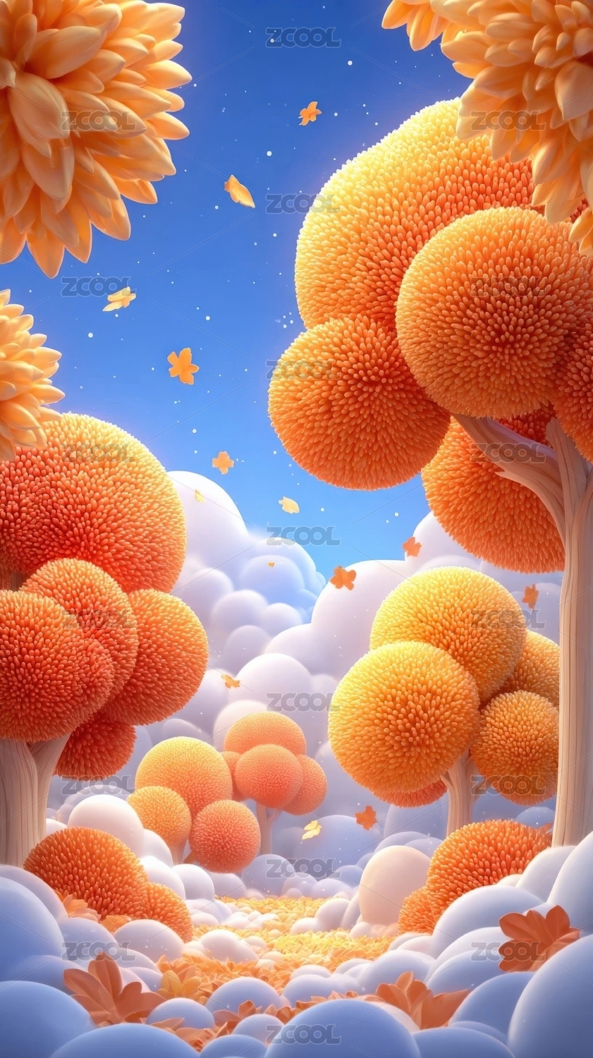 3D秋季橙色森林树木背景
