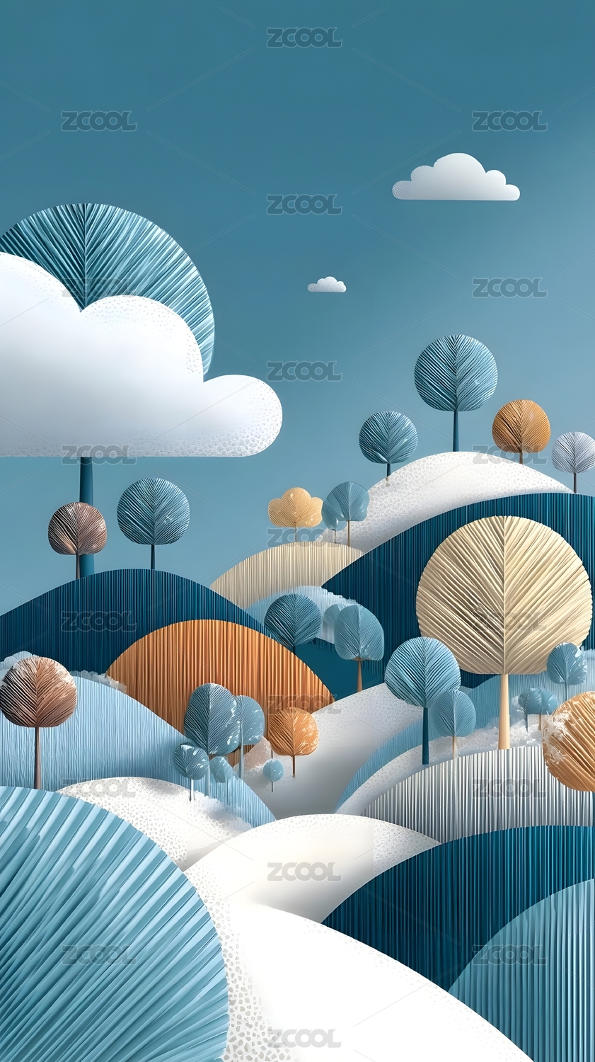 抽象山水树木风景