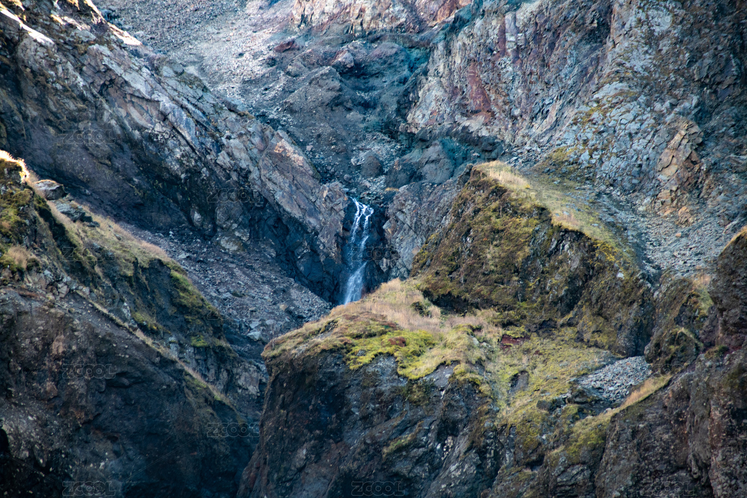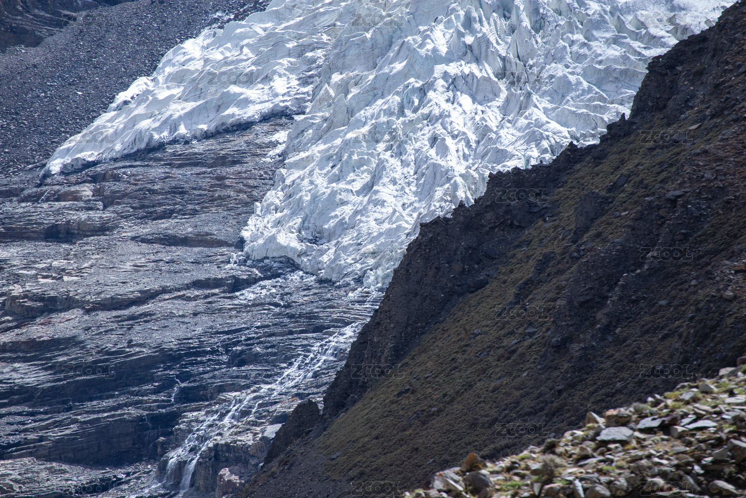 中国西藏日喀则卡若拉冰川融水形成的瀑布群