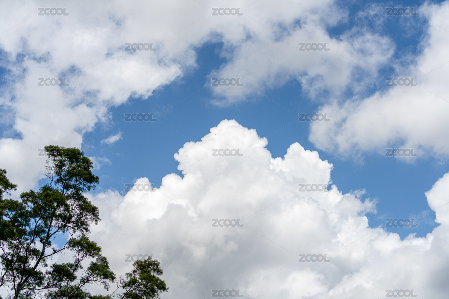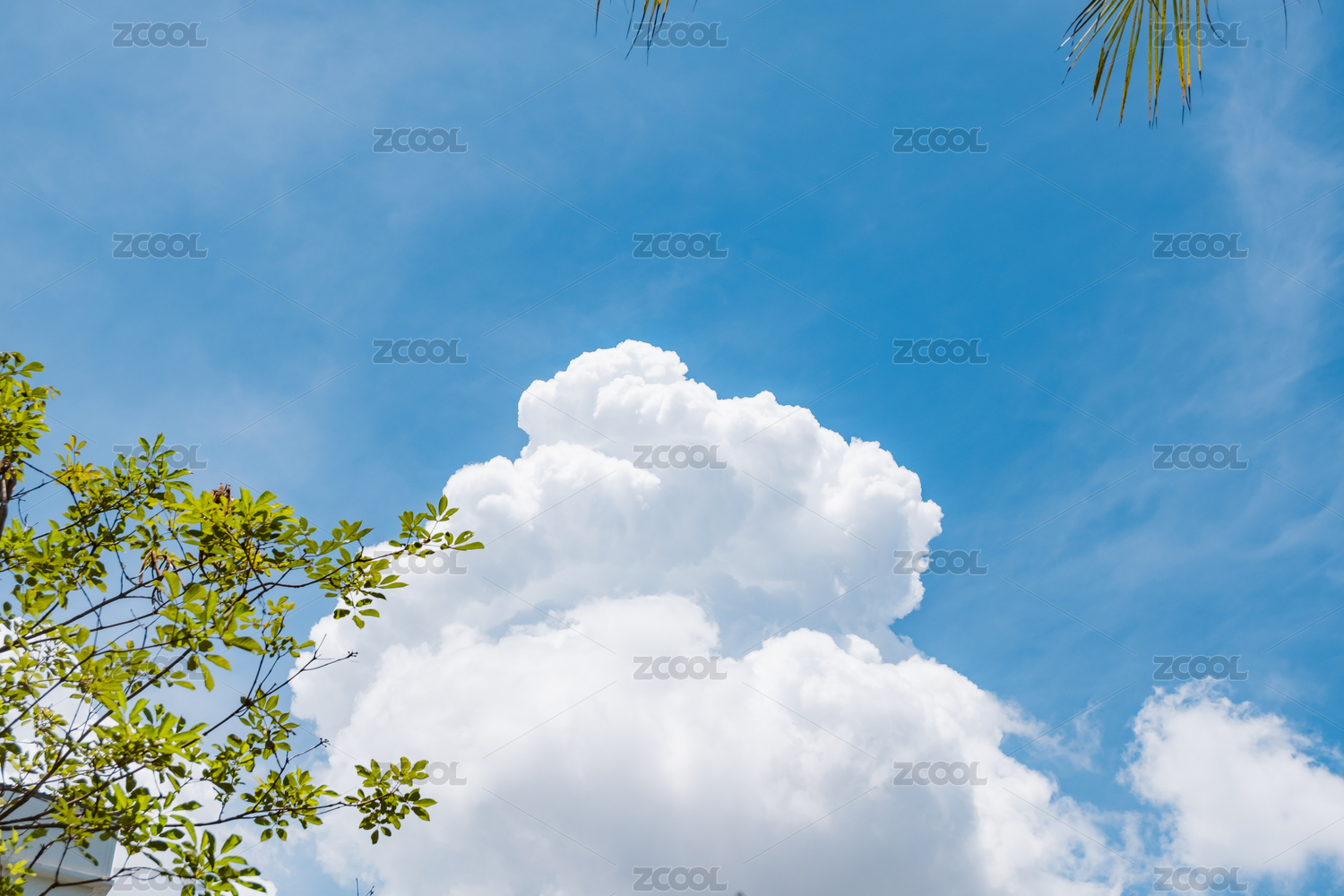 树木,树叶,蓝天,白云,天空,自然,绿色,阳光,夏天,景色