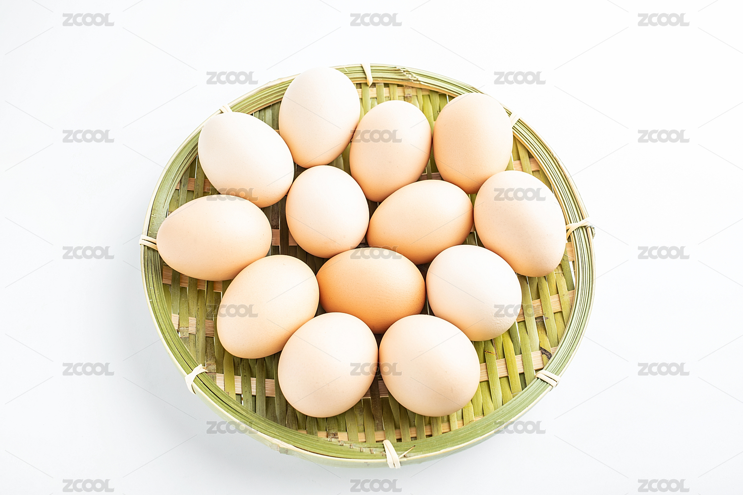 一竹筐鸡蛋在白背景上