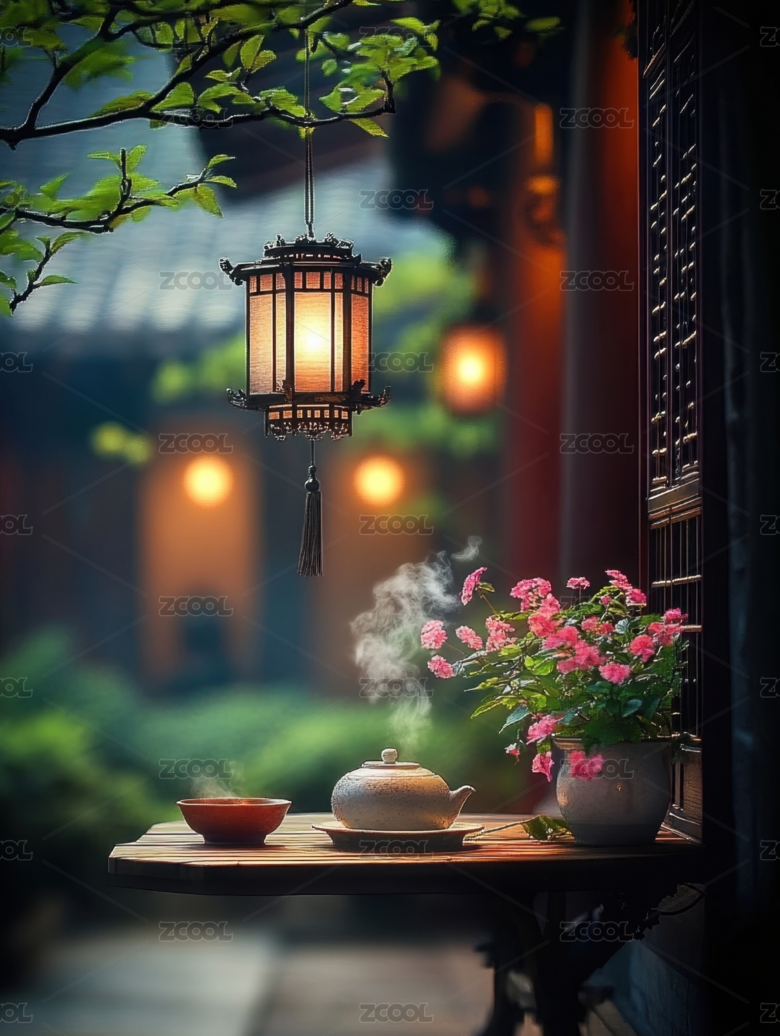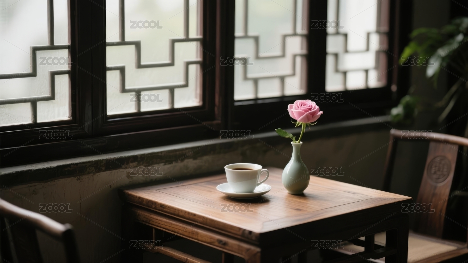 窗台茶景雅致感中式休闲场景