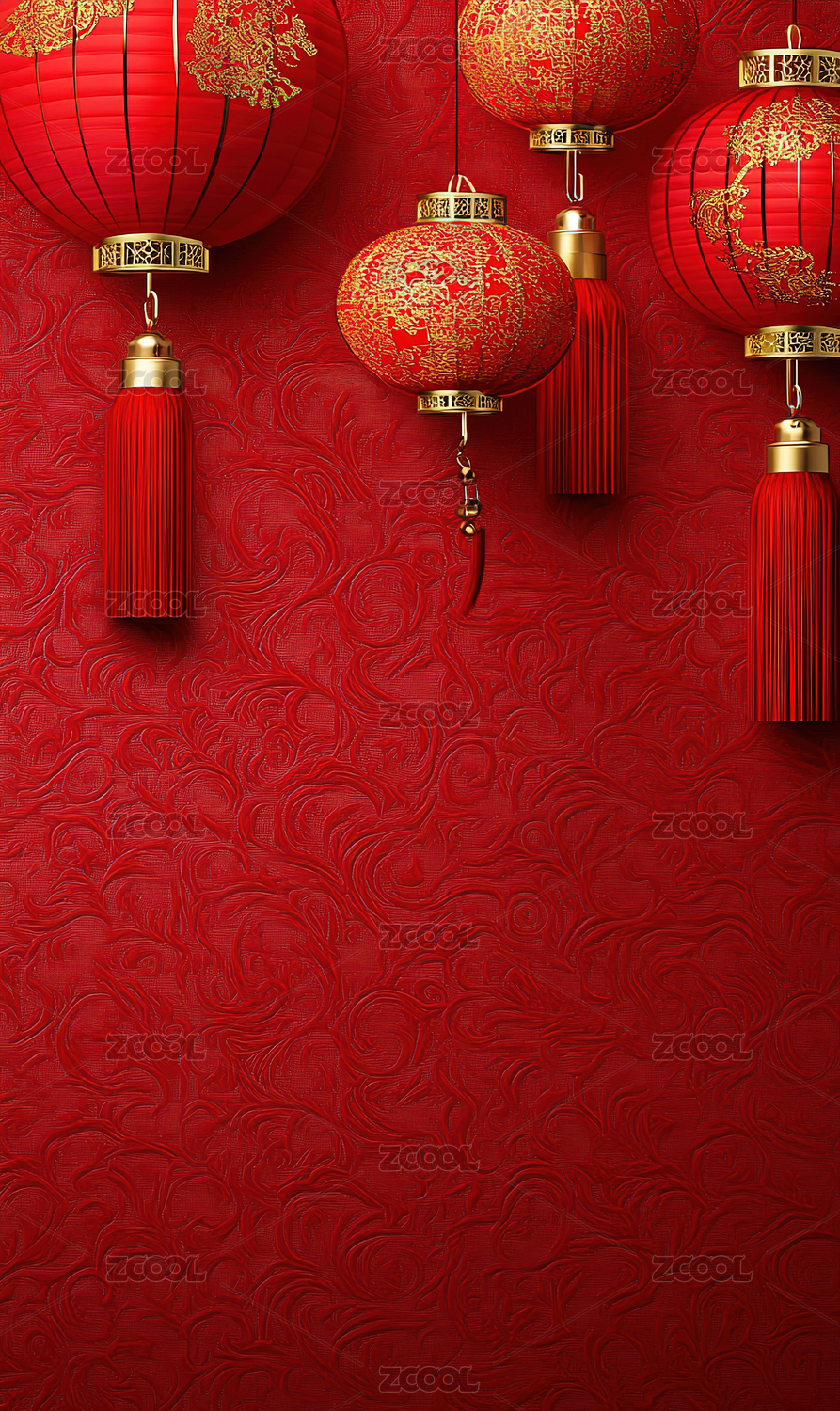 红色喜庆背景下的金色灯笼