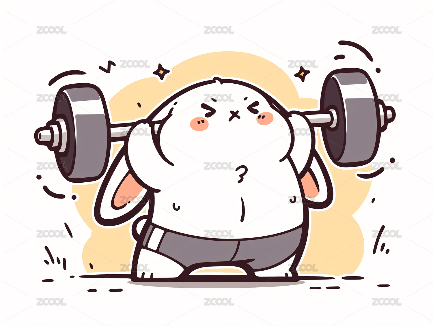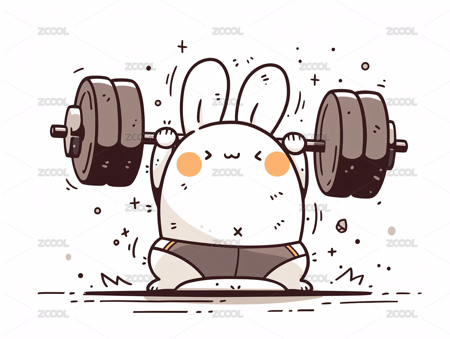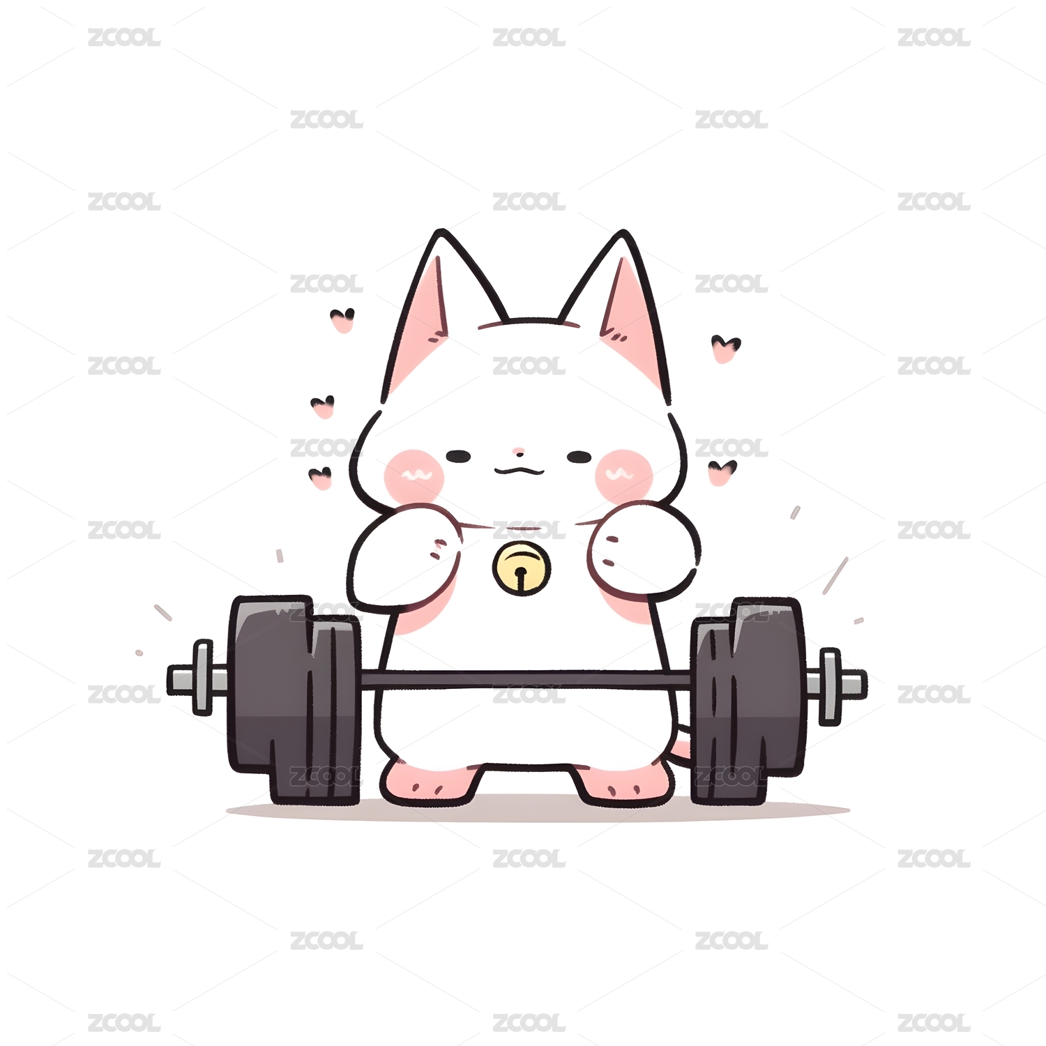 卡通简洁矢量风格手绘小猫举重做运动插画