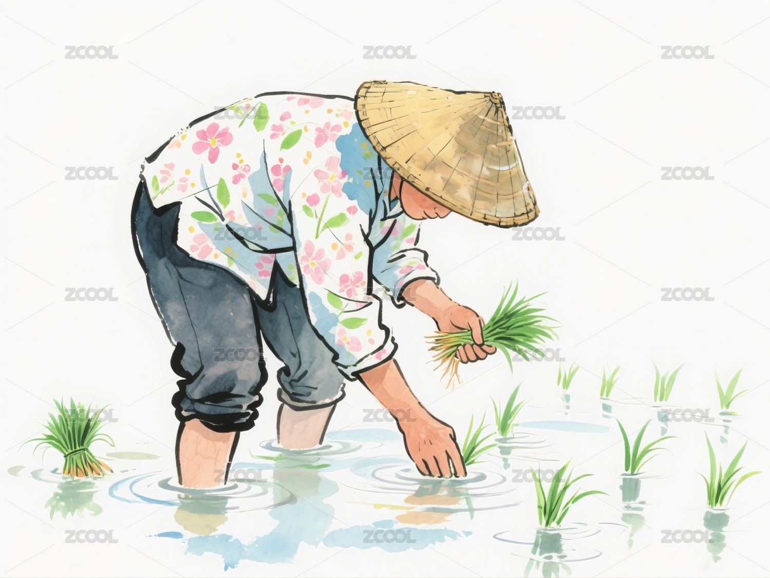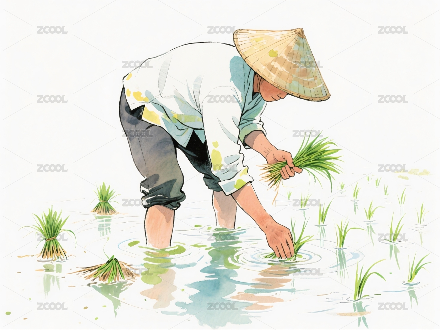 水墨画,国画,写意画,农耕,插秧,谷雨,手绘
