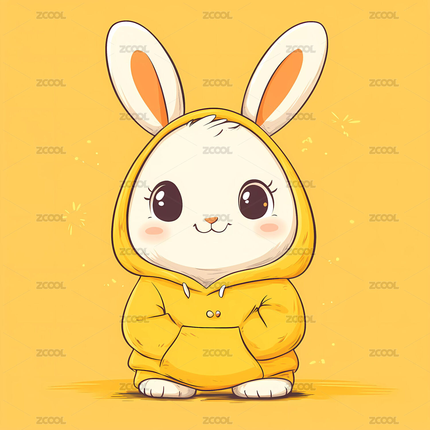 复活节兔子拿画笔画彩蛋卡通插画元素