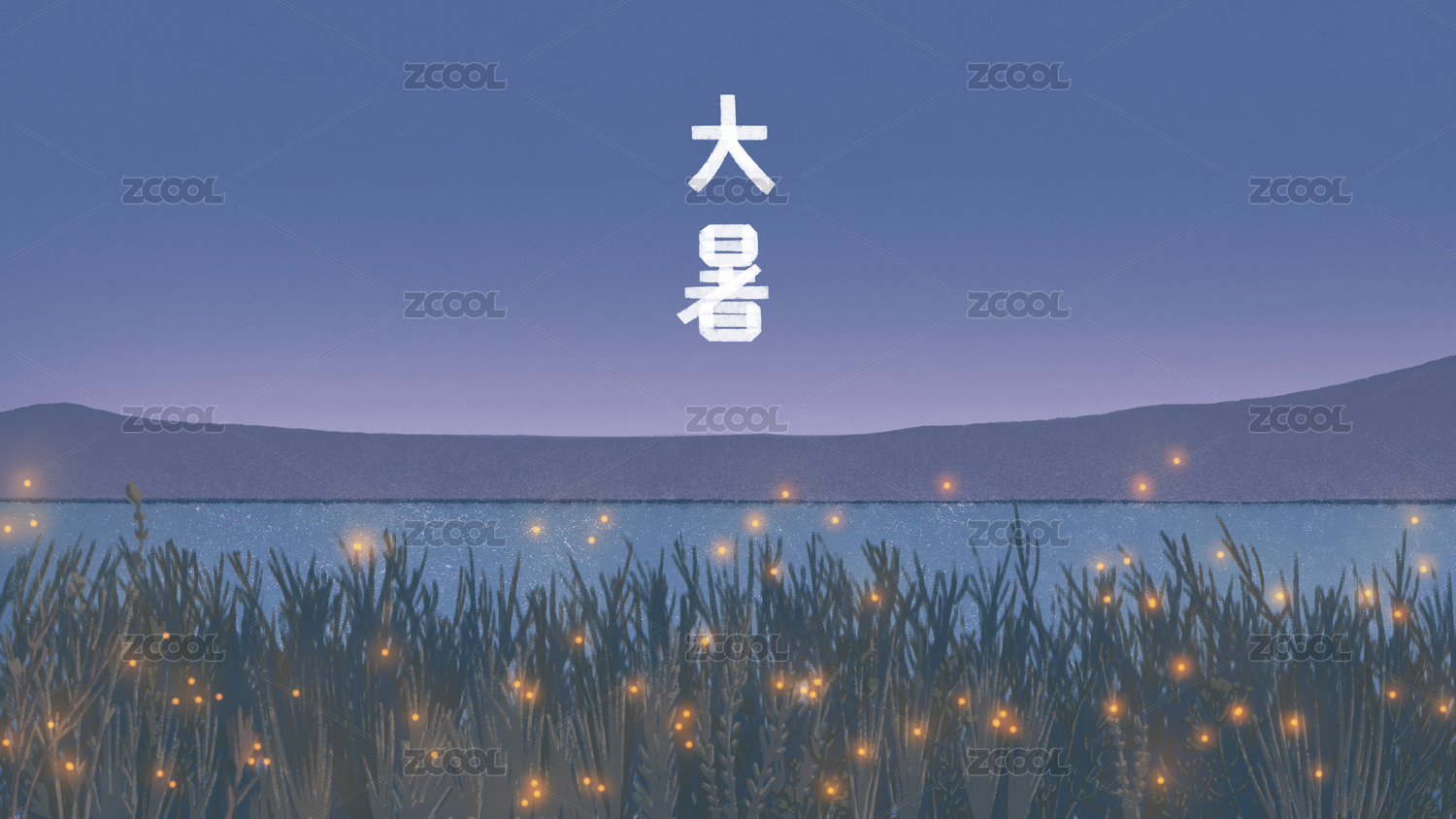 大暑二十四节气艺术字,一片西瓜,蓝色背景