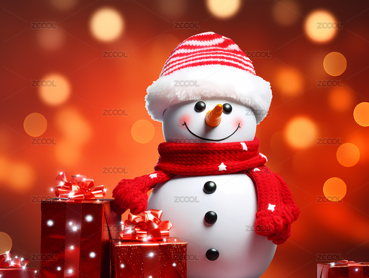 圣诞雪人与礼物3D渲染