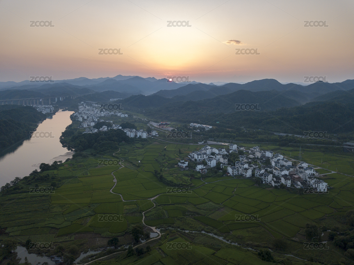 群山环抱,村庄,日出,逆光,缙云,丽水,自然,环境,绿色,秋色