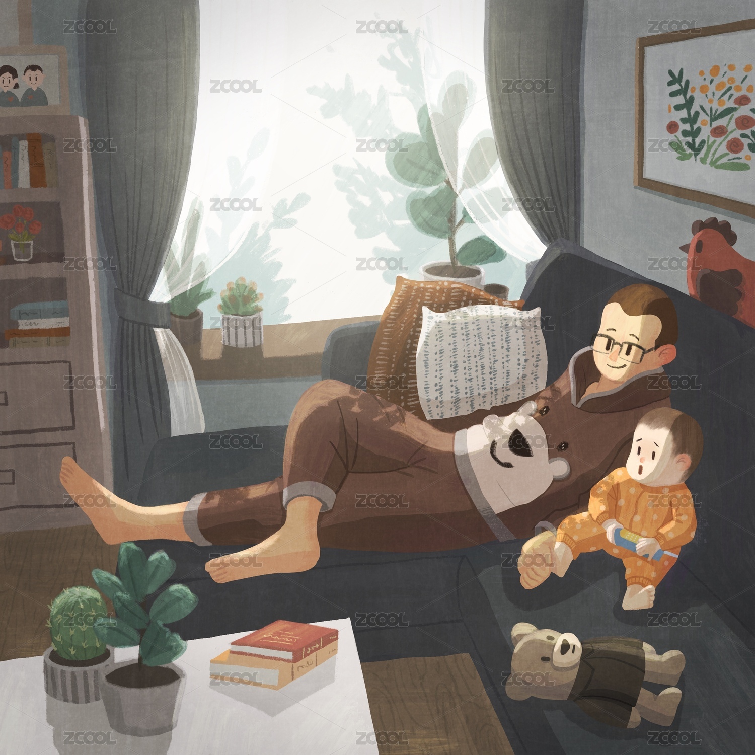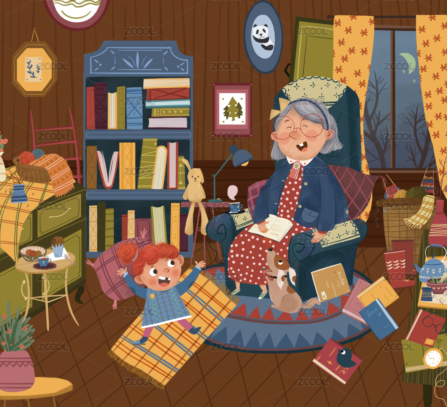HEYYTDK2021,书柜,插画,卡通,手绘,人物,亲情,家人