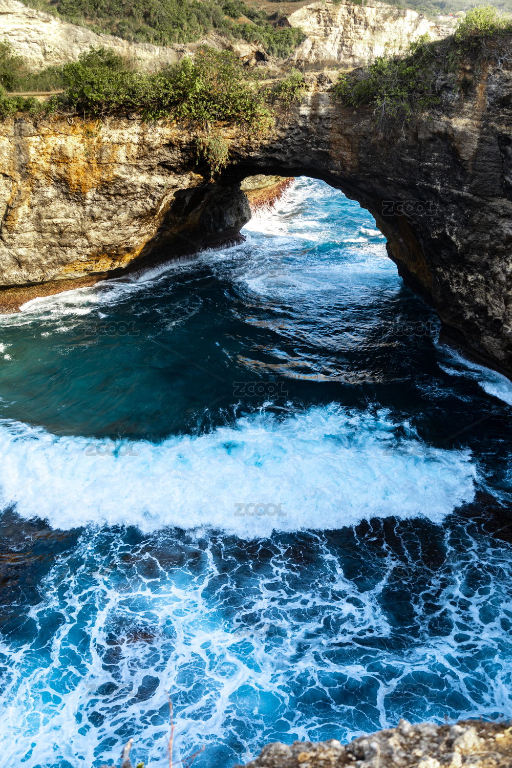 印度尼西亚巴厘岛佩尼达岛破碎海滩拱门景观