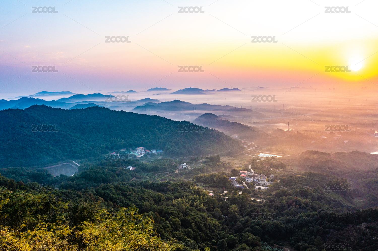 早晨太阳升起时的山
