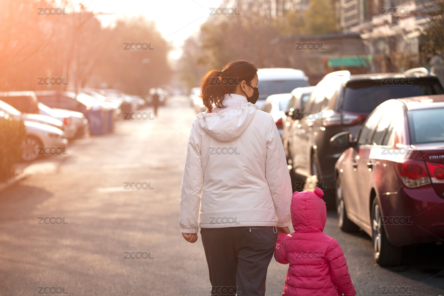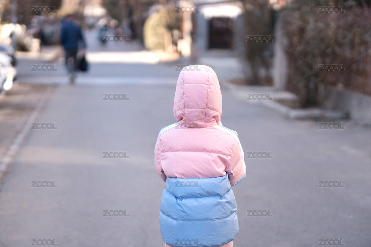 玩耍,户外,冬天,小孩,孩子,人物,小女孩,冬季,背影,羽绒服