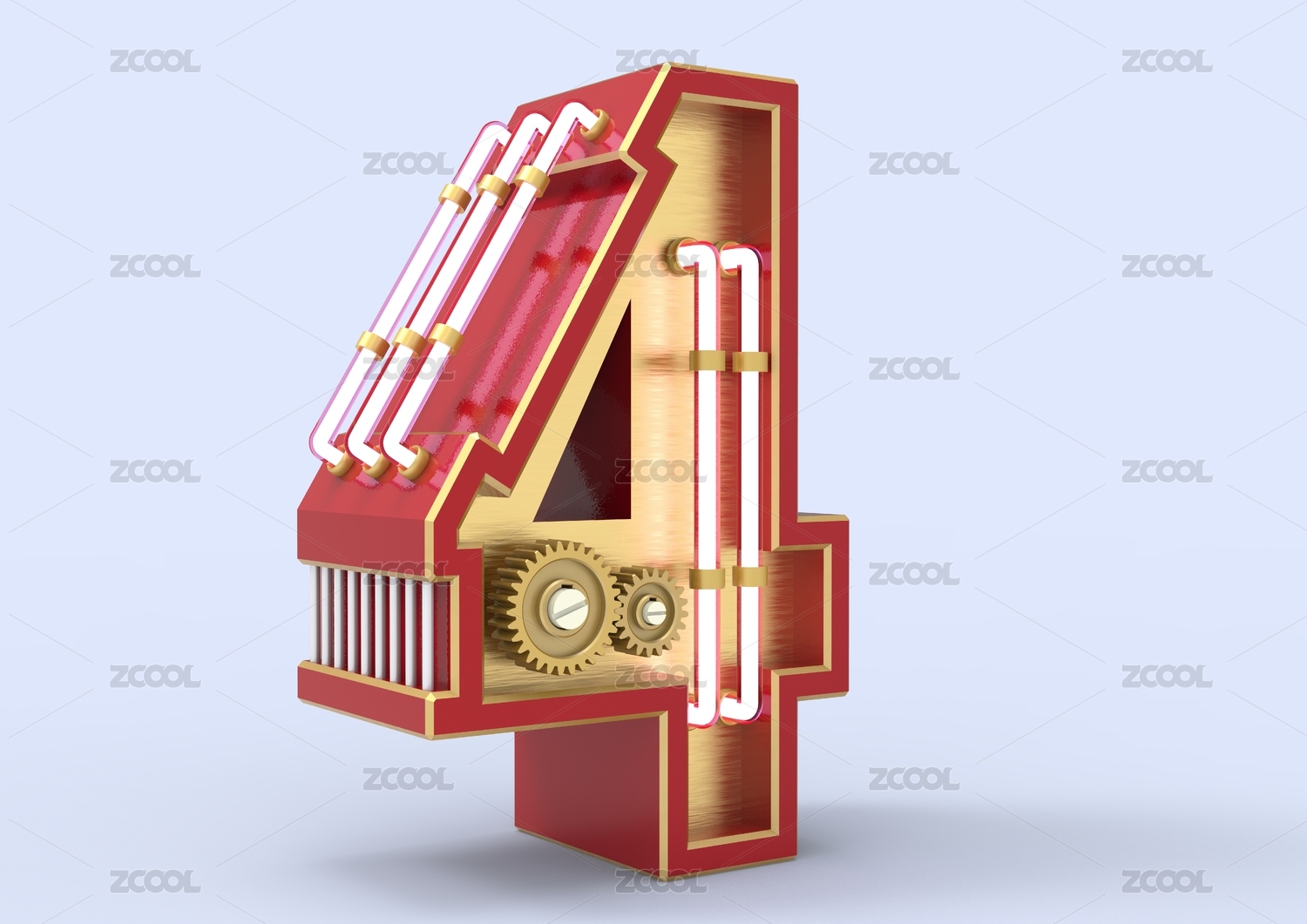 3D,立体,机械,科技感,金属质感,5,五,数字设计,文字,红色