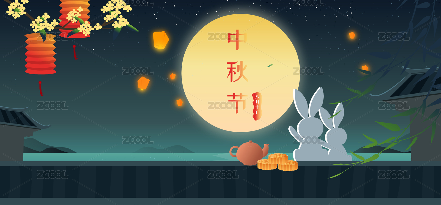 中秋节,插画,画,中国传统节日,节日,中国风,月亮,孔明灯,图像,季节