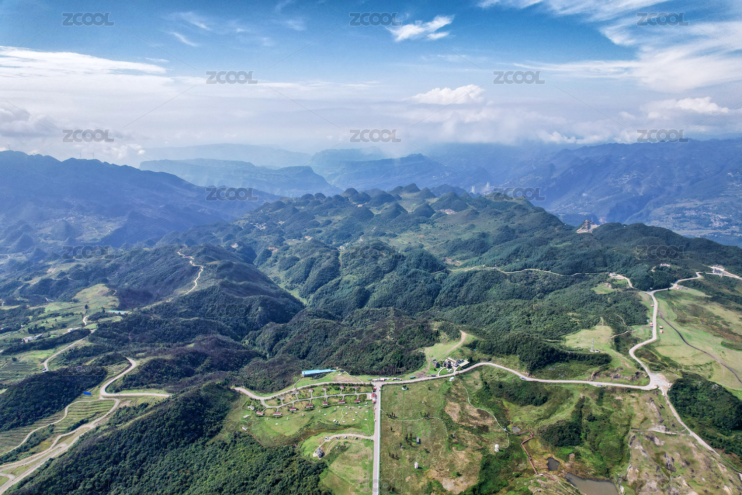 航拍贵州六盘水水城区玉舍镇野鸡坪风光