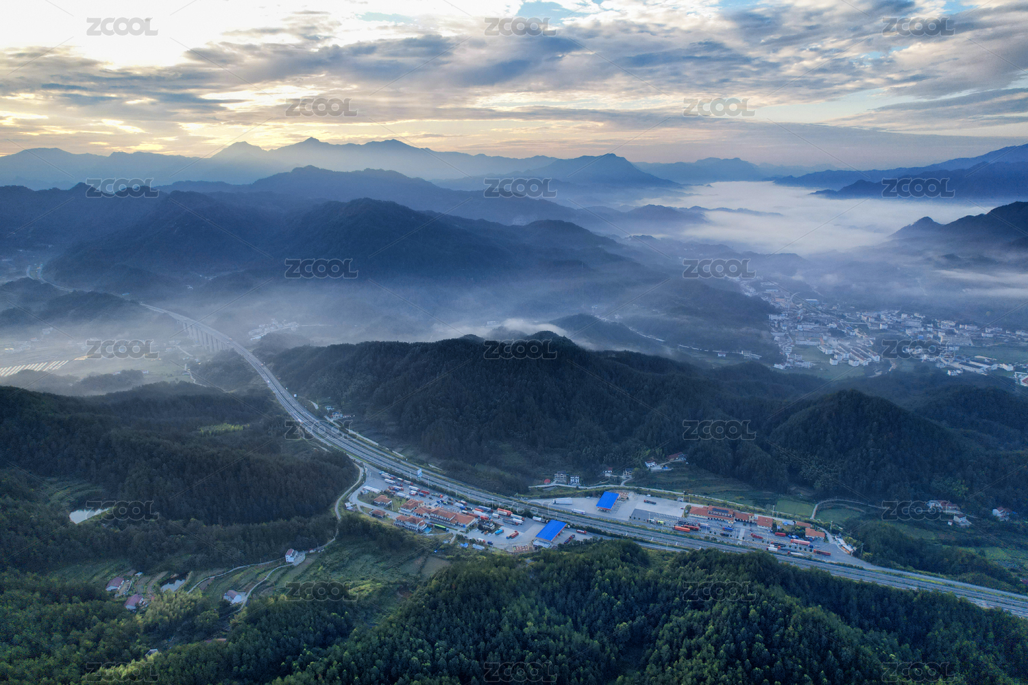 航拍沪武高速湖北英山段风光