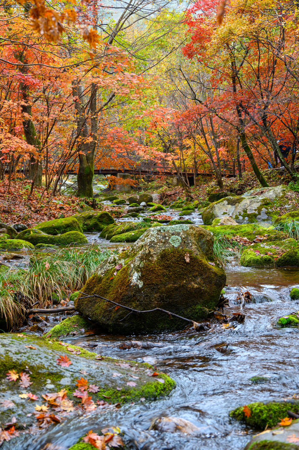 沈阳本溪老边沟,秋季枫树红叶溪流自然风光