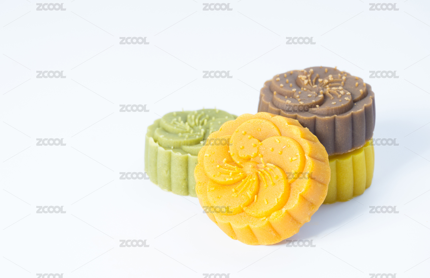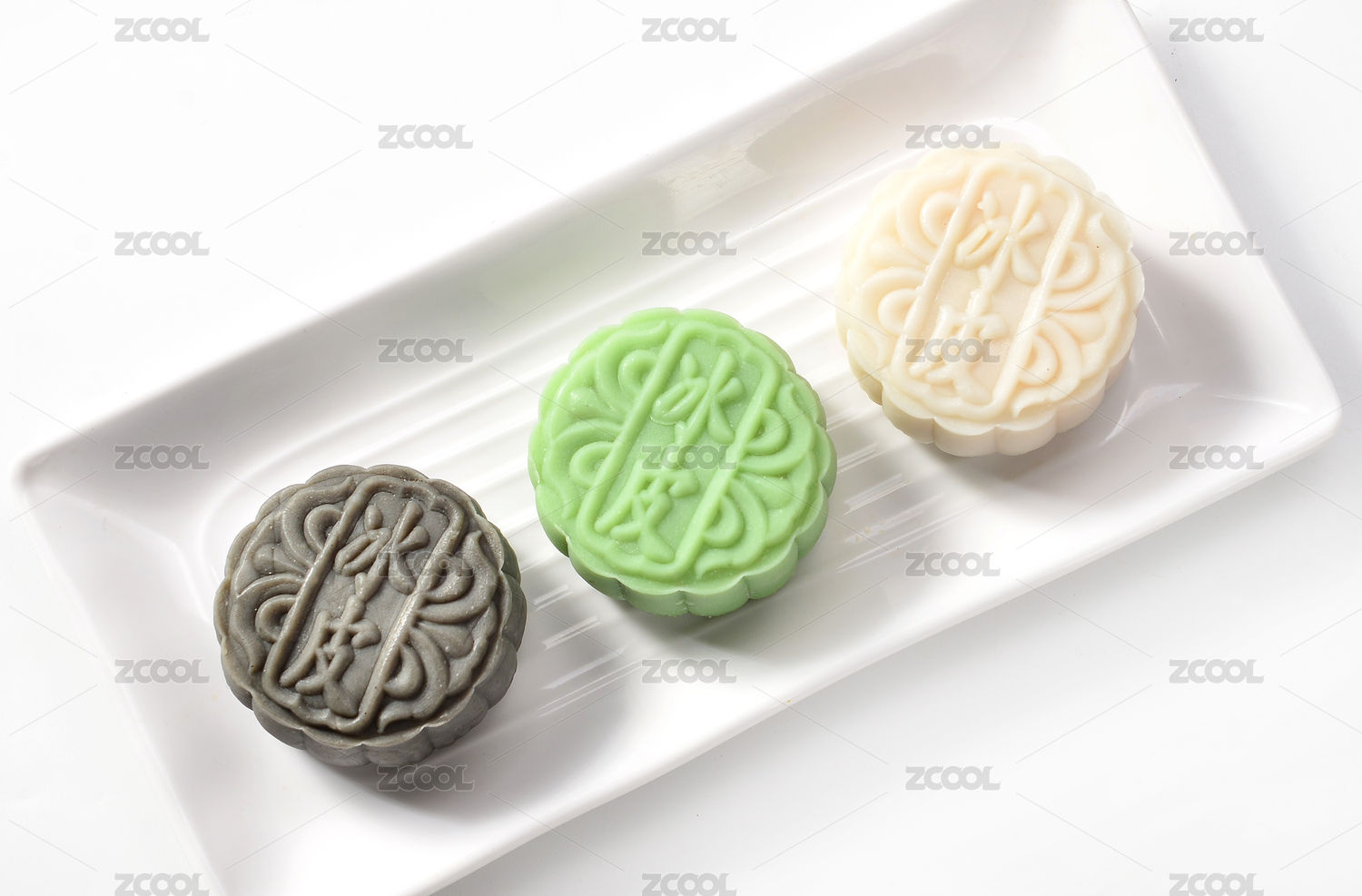 白色背景下一盘中国传统中秋节月饼特写