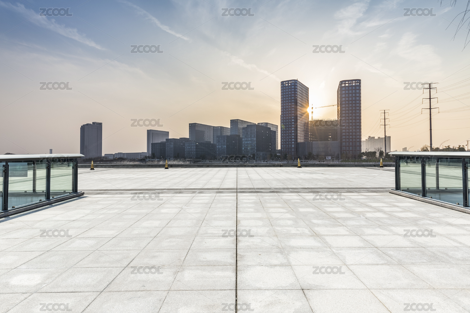 现代城市天际线与空旷路面