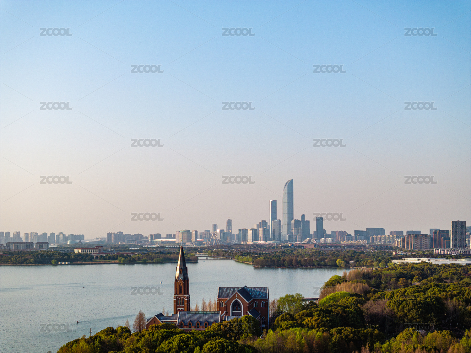 中国江苏苏州独墅湖教堂航拍