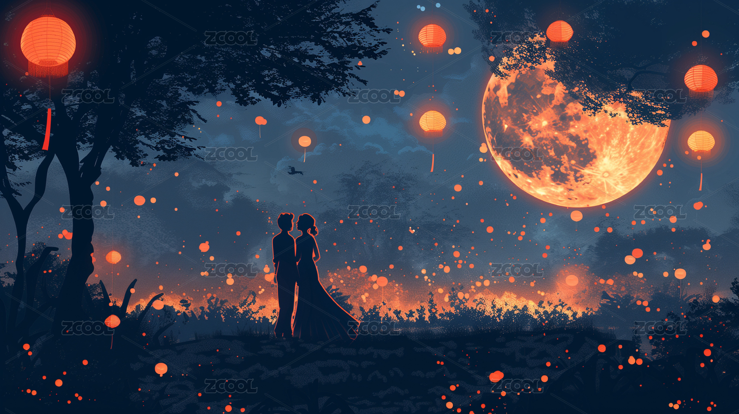 月亮, 树木, 自然, 草地, 宁静, 艺术, 绘画, 动物, 水彩, 兔子