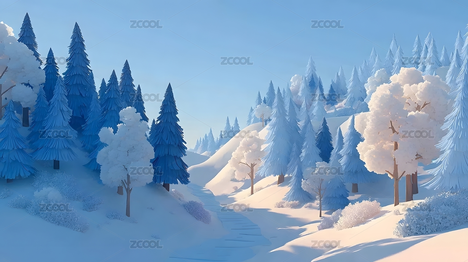 冰雪覆盖的梦幻森林
