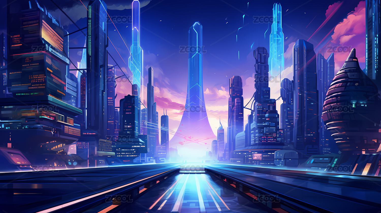 科幻都市幻彩色未来城市场景