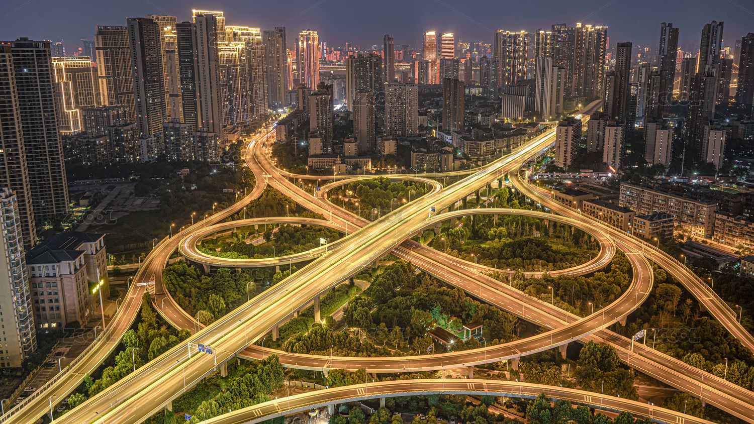 马鹦路附近三叶草状城市立交桥旁晚夜景