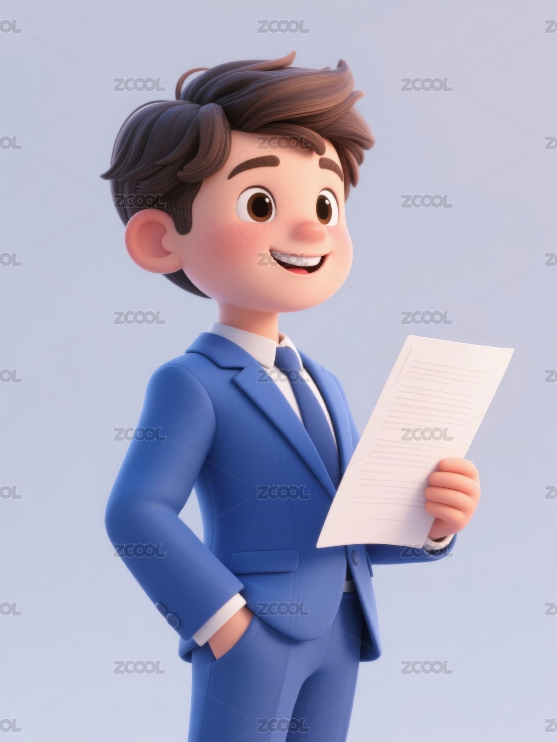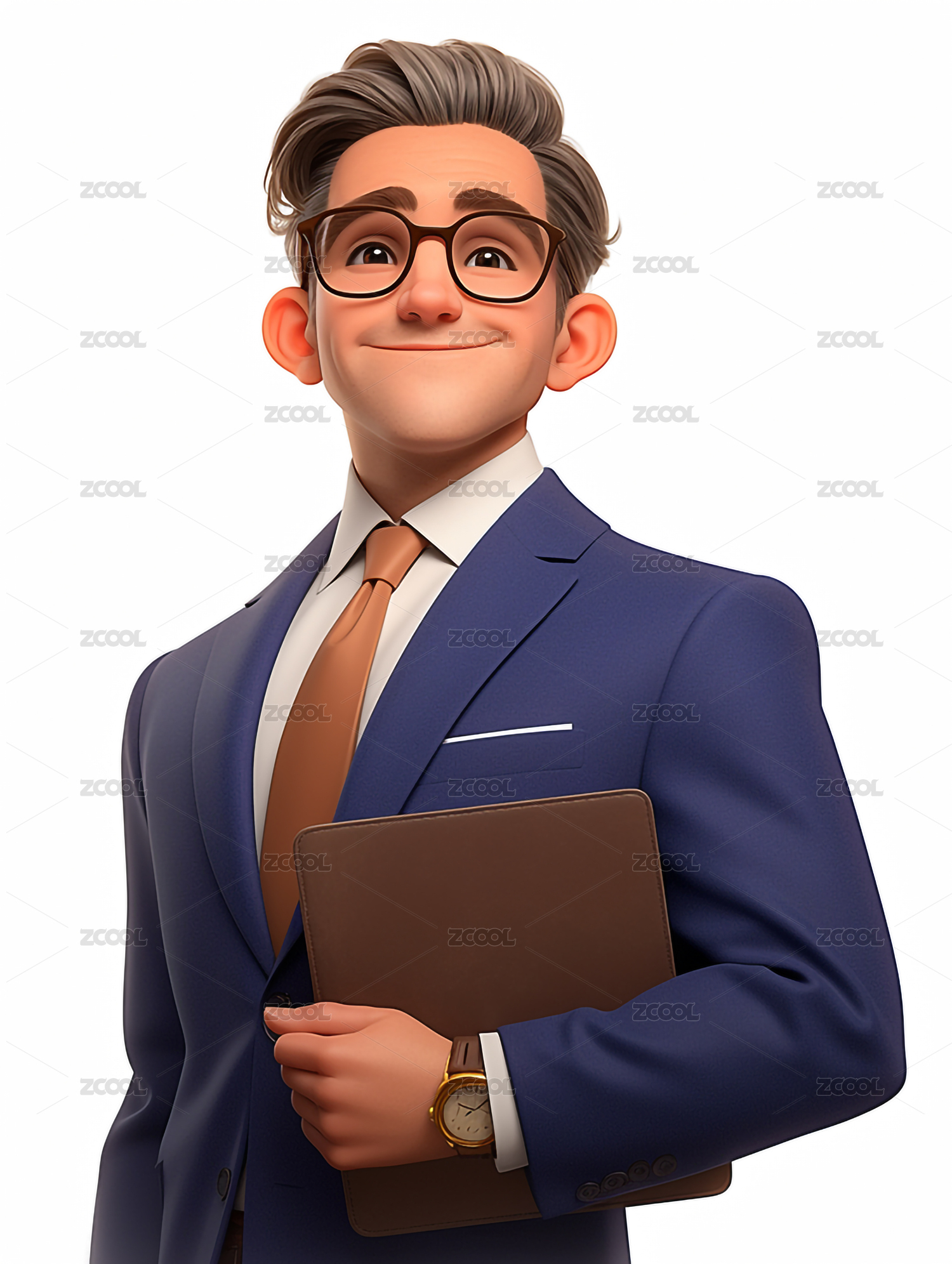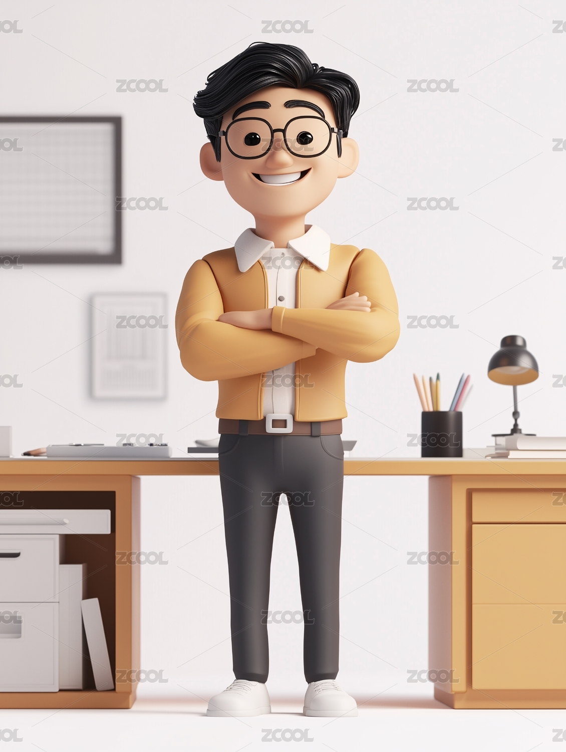 3D,卡通,人物,职业,AI数字艺术,男,男人,站,进步,知识