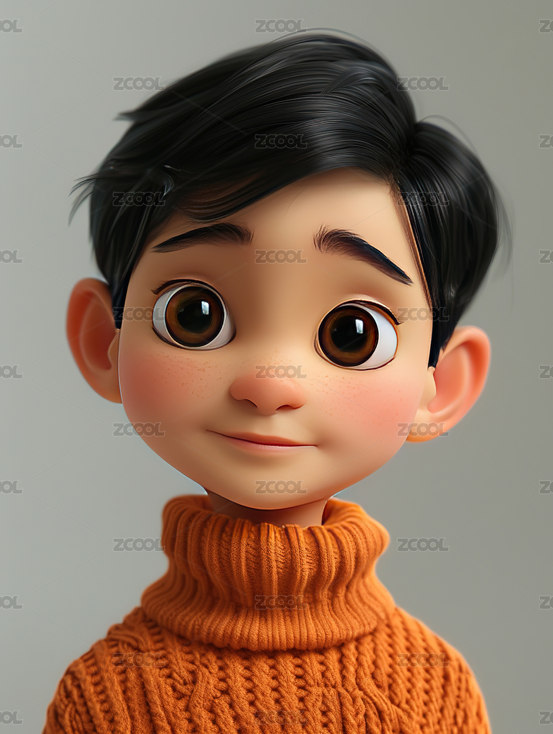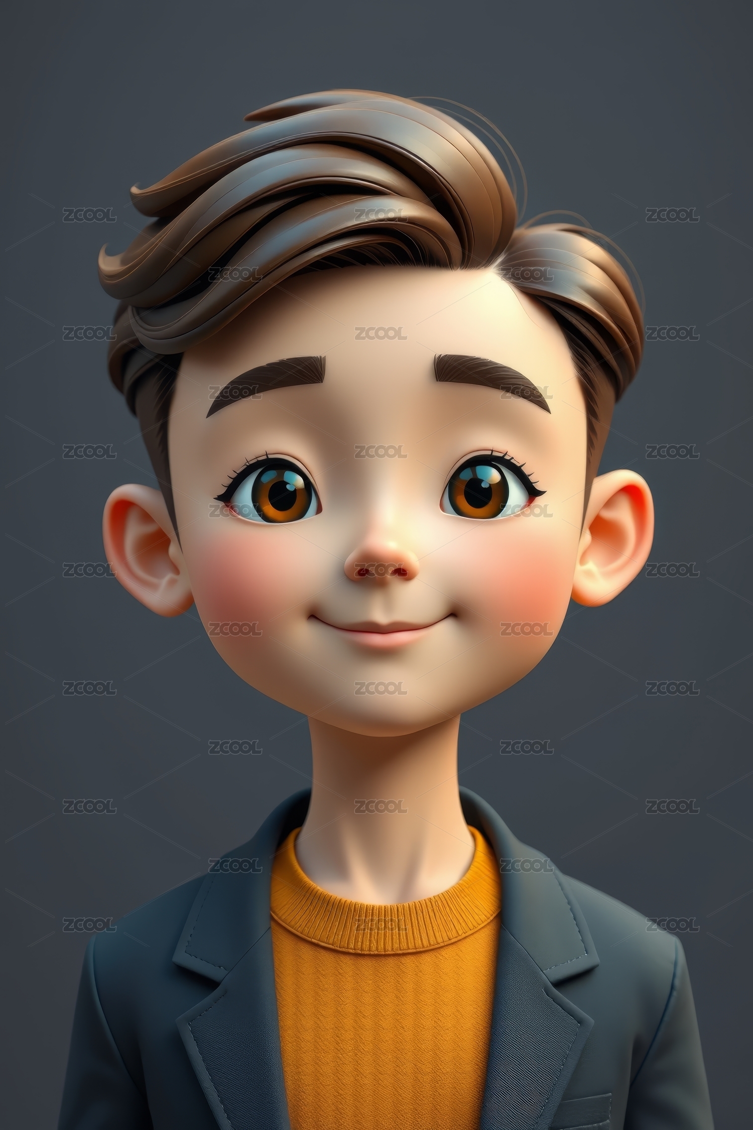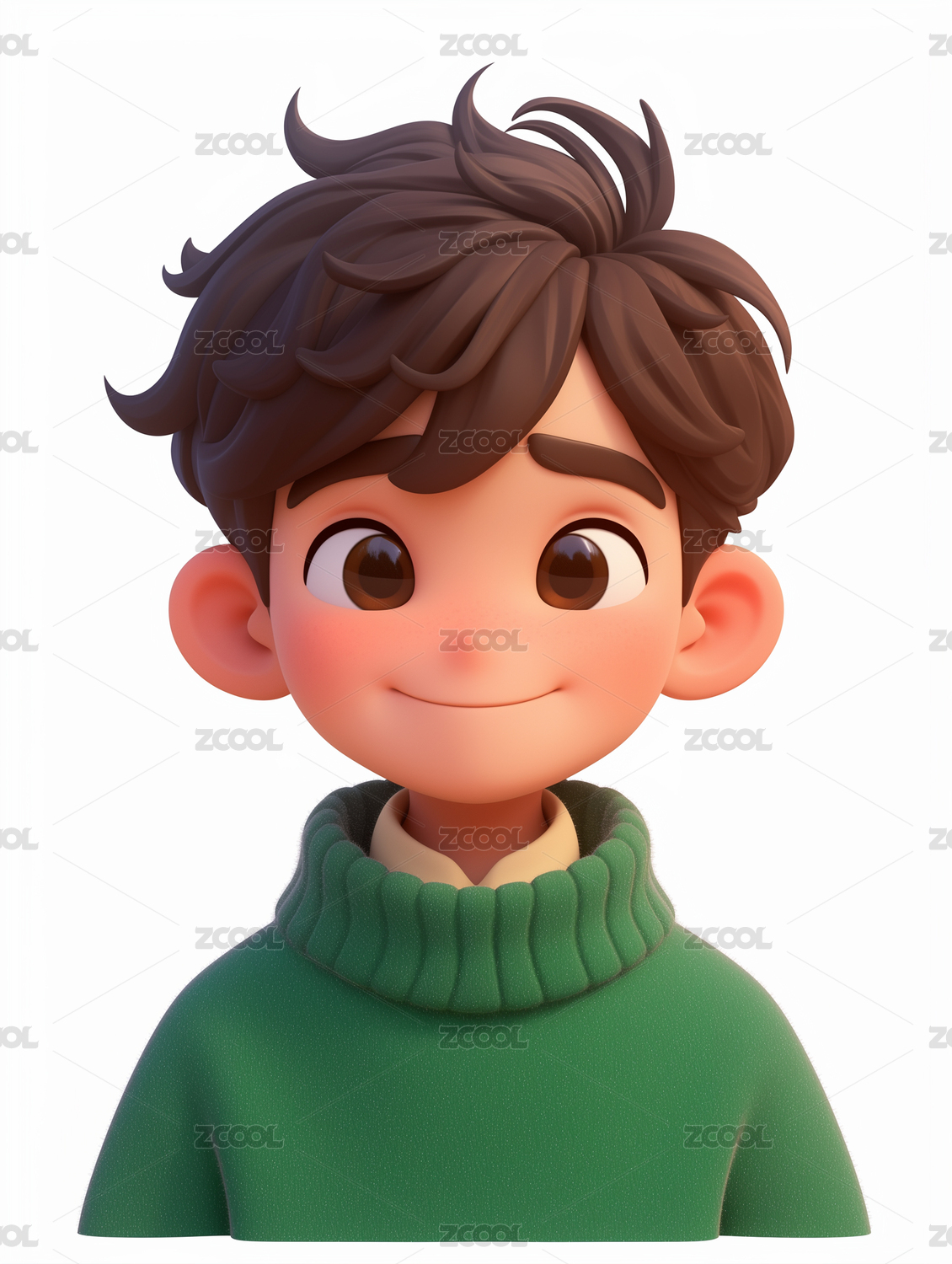 男孩卡通3d头像卡通人物面部三维渲染插画