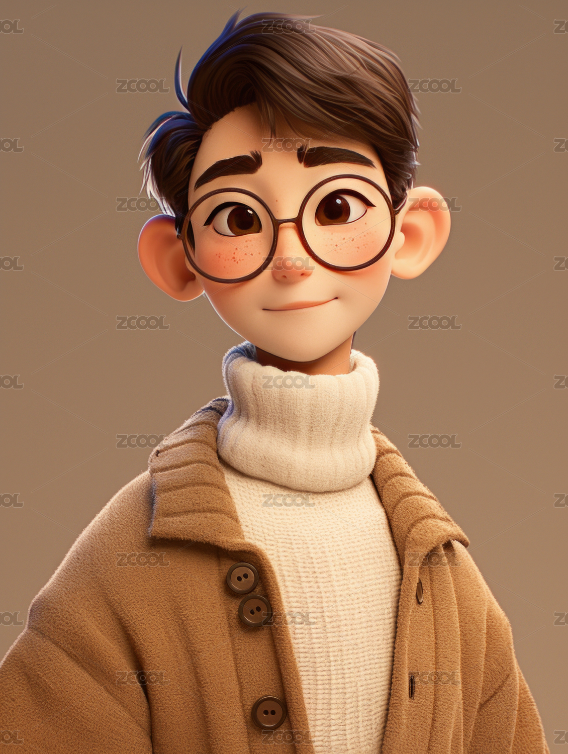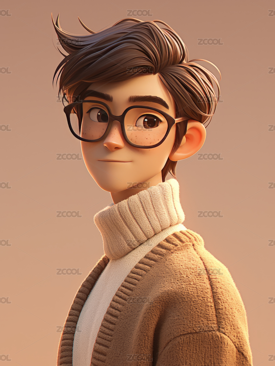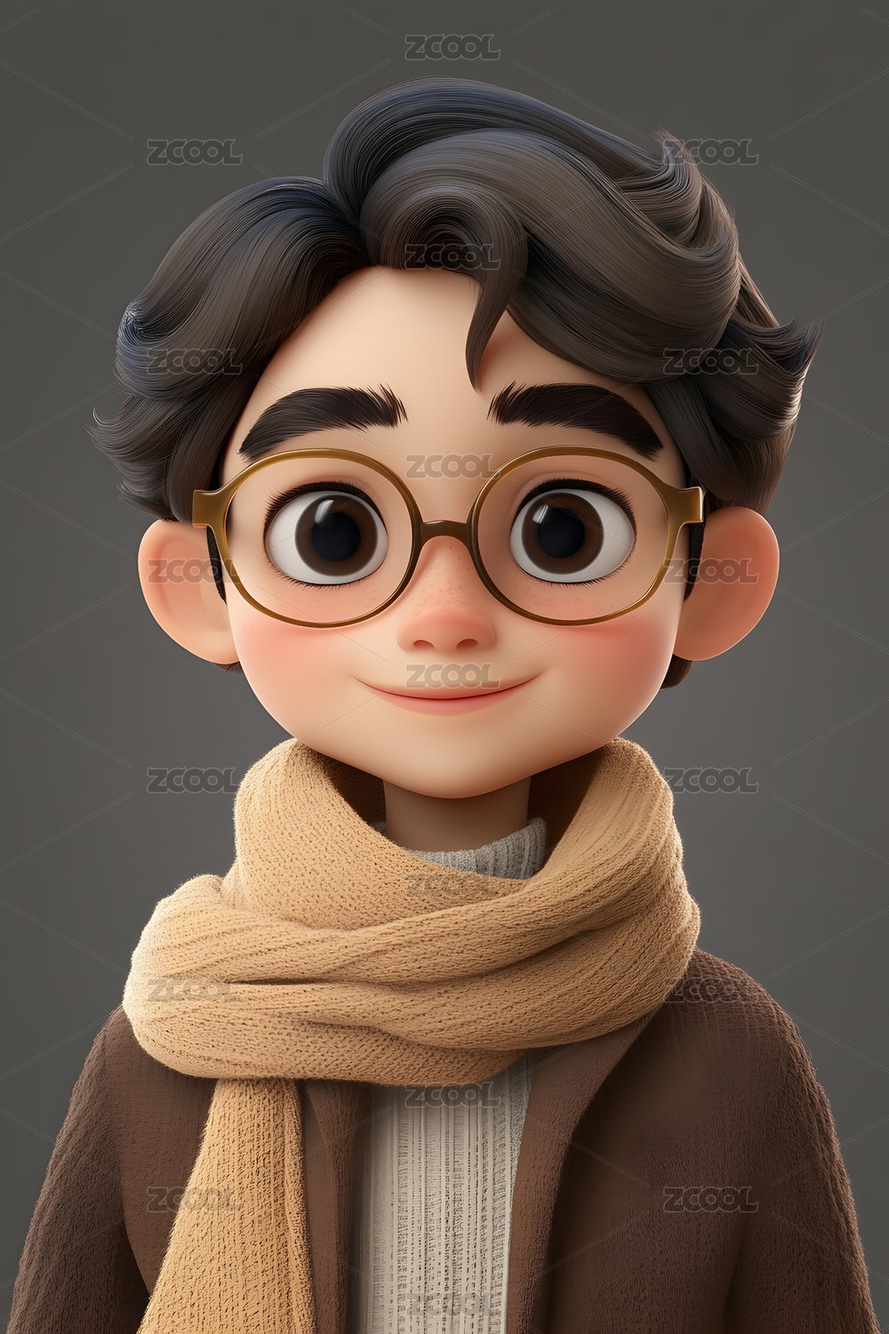 男孩卡通3d头像卡通人物面部三维渲染插画