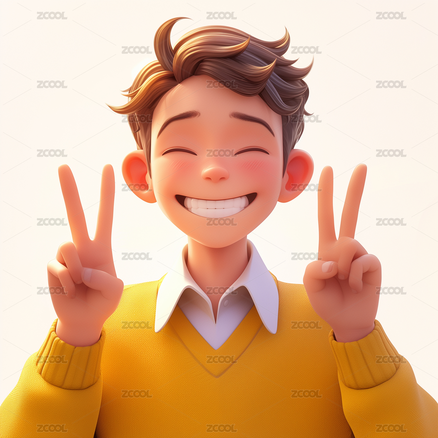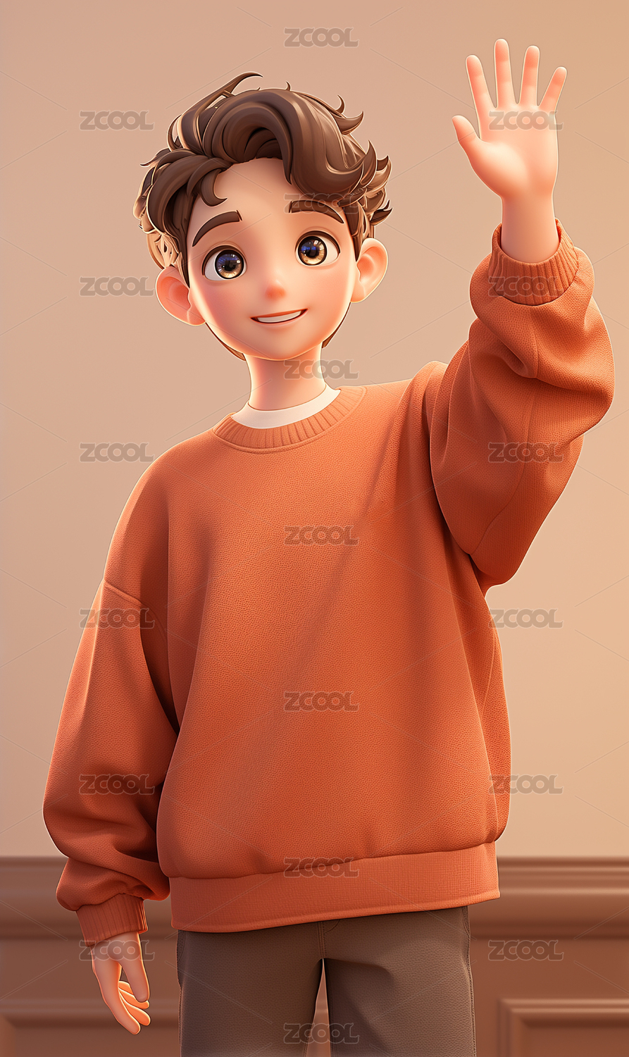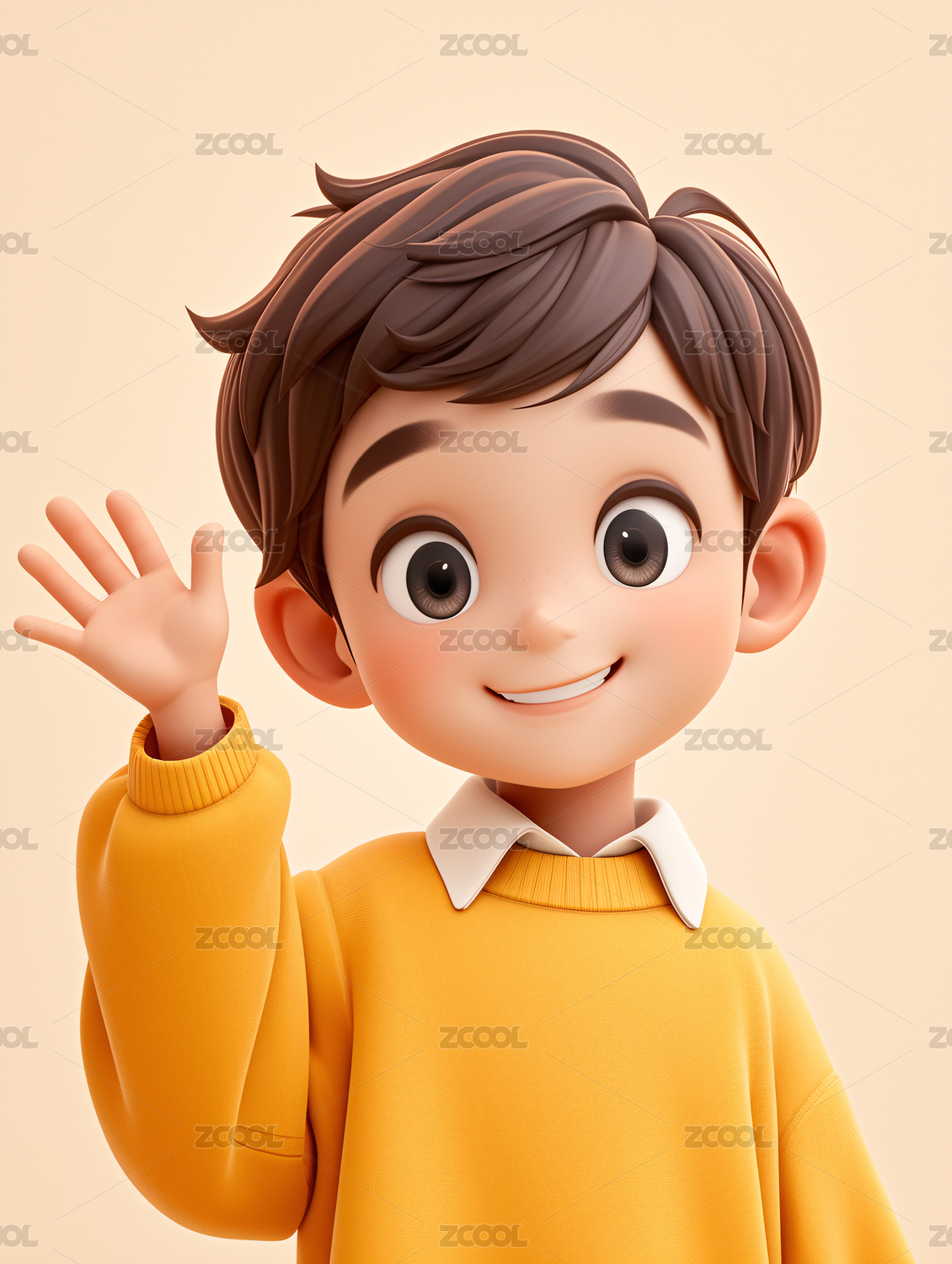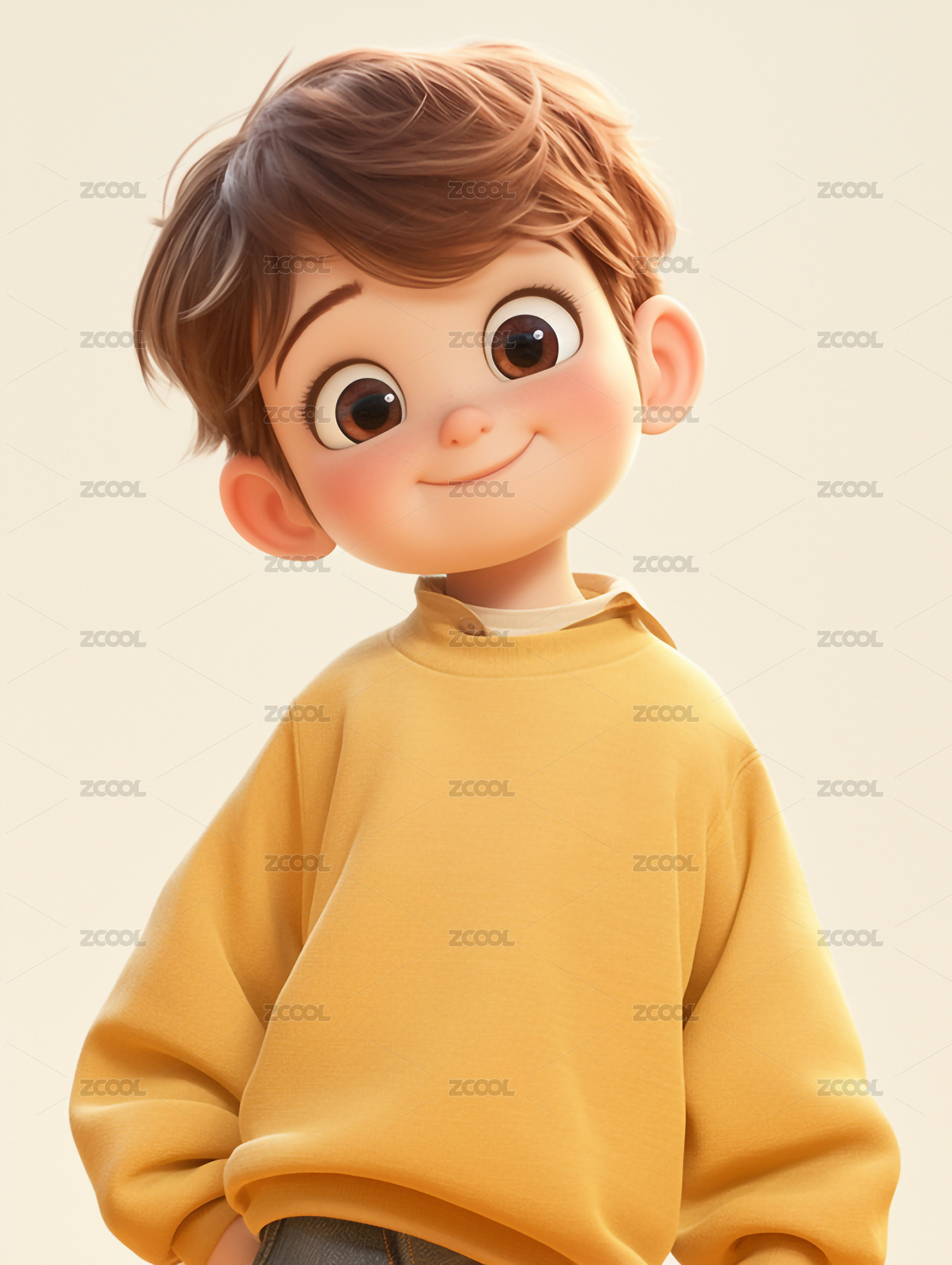 棕色头发和黄色毛衣的卡通男孩高清图片