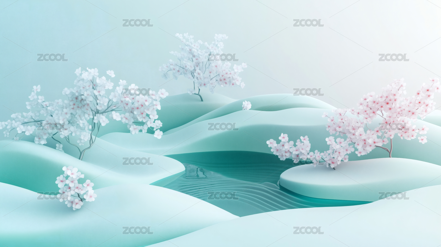 清新,溪流,卡通,3D,明亮,风景,清澈,春天,河流,季节