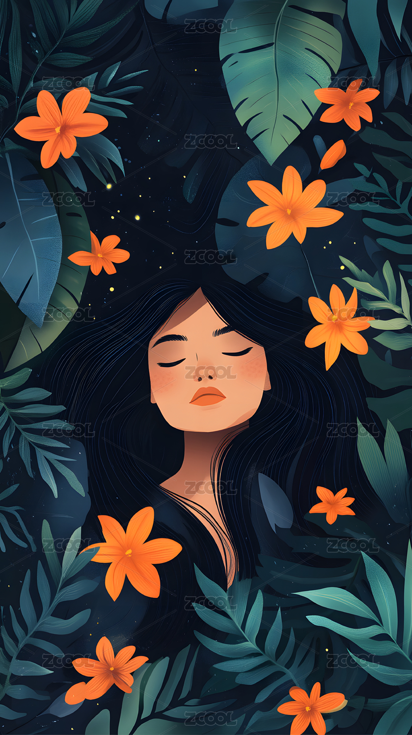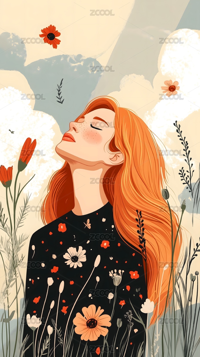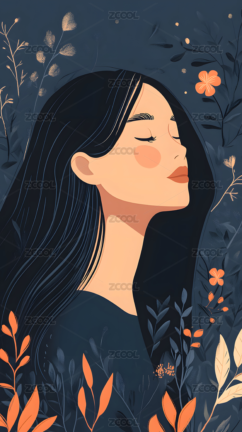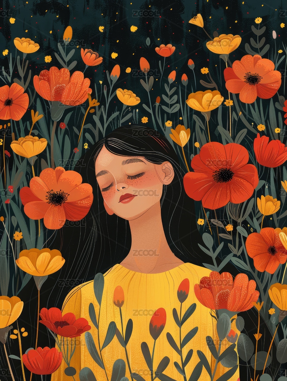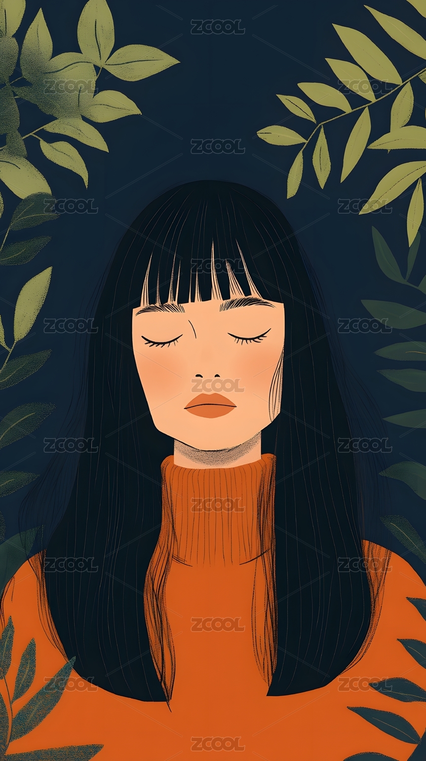 女性,设计,风格,艺术,自然,绿色,黄色,美丽,插画,肖像