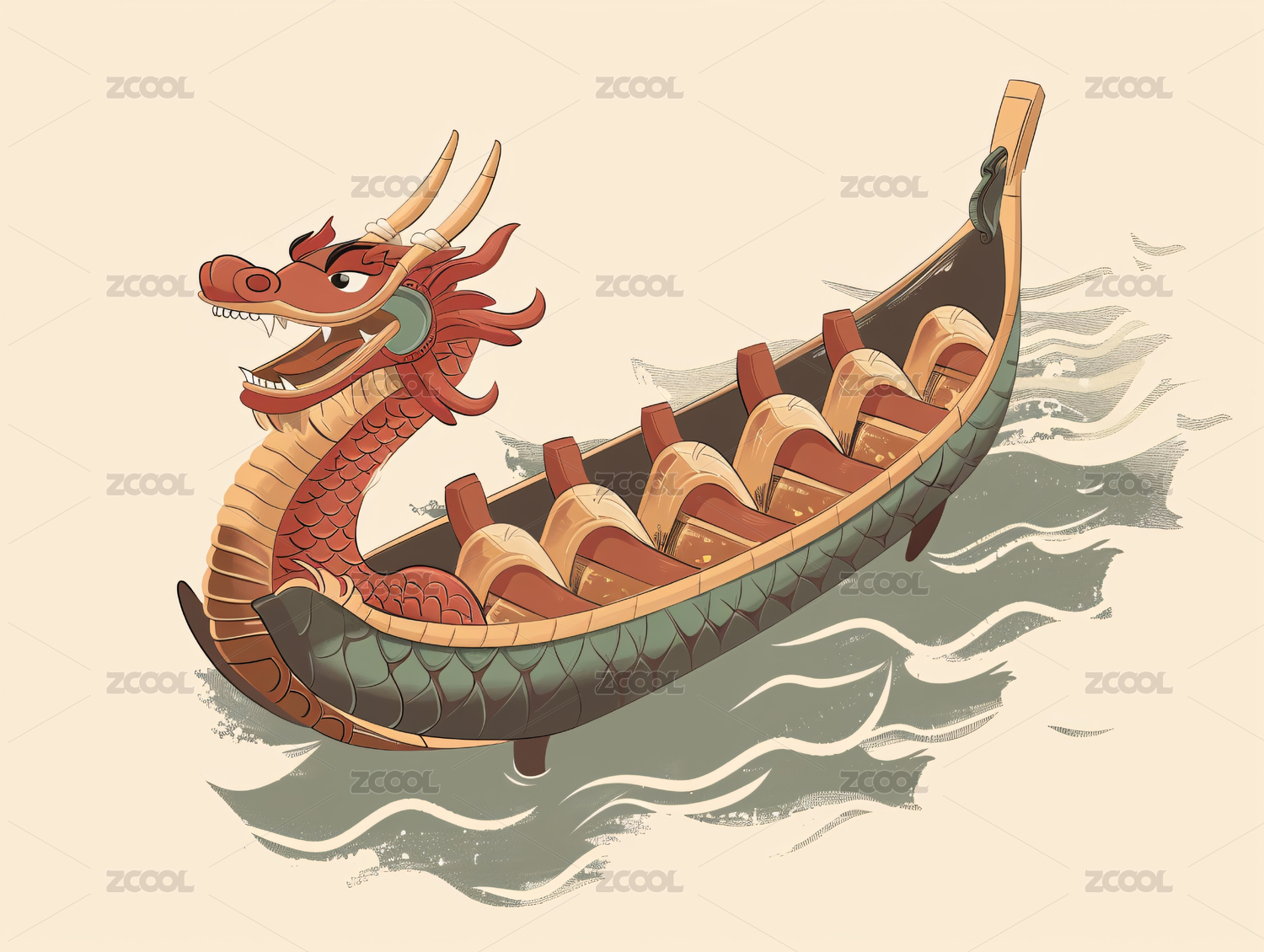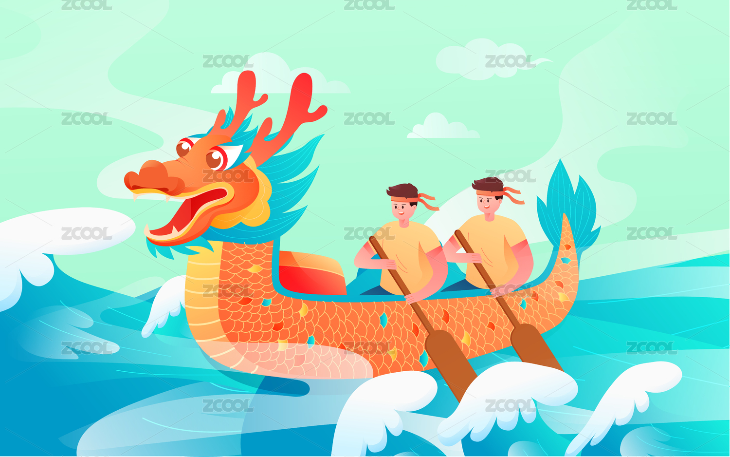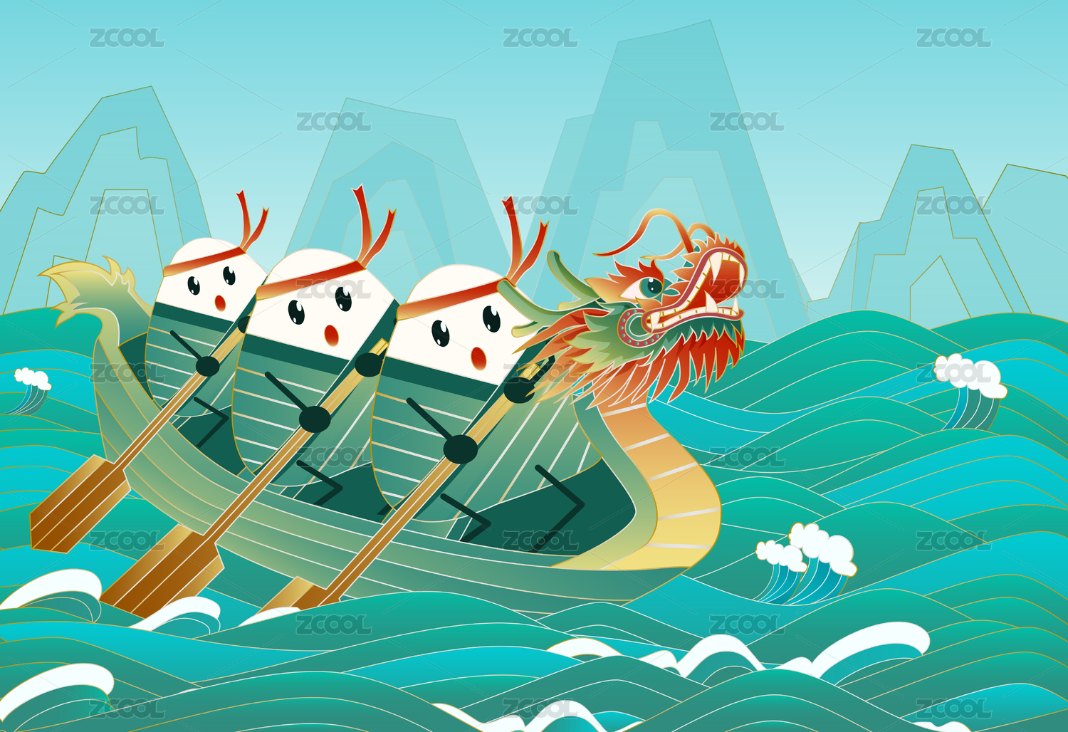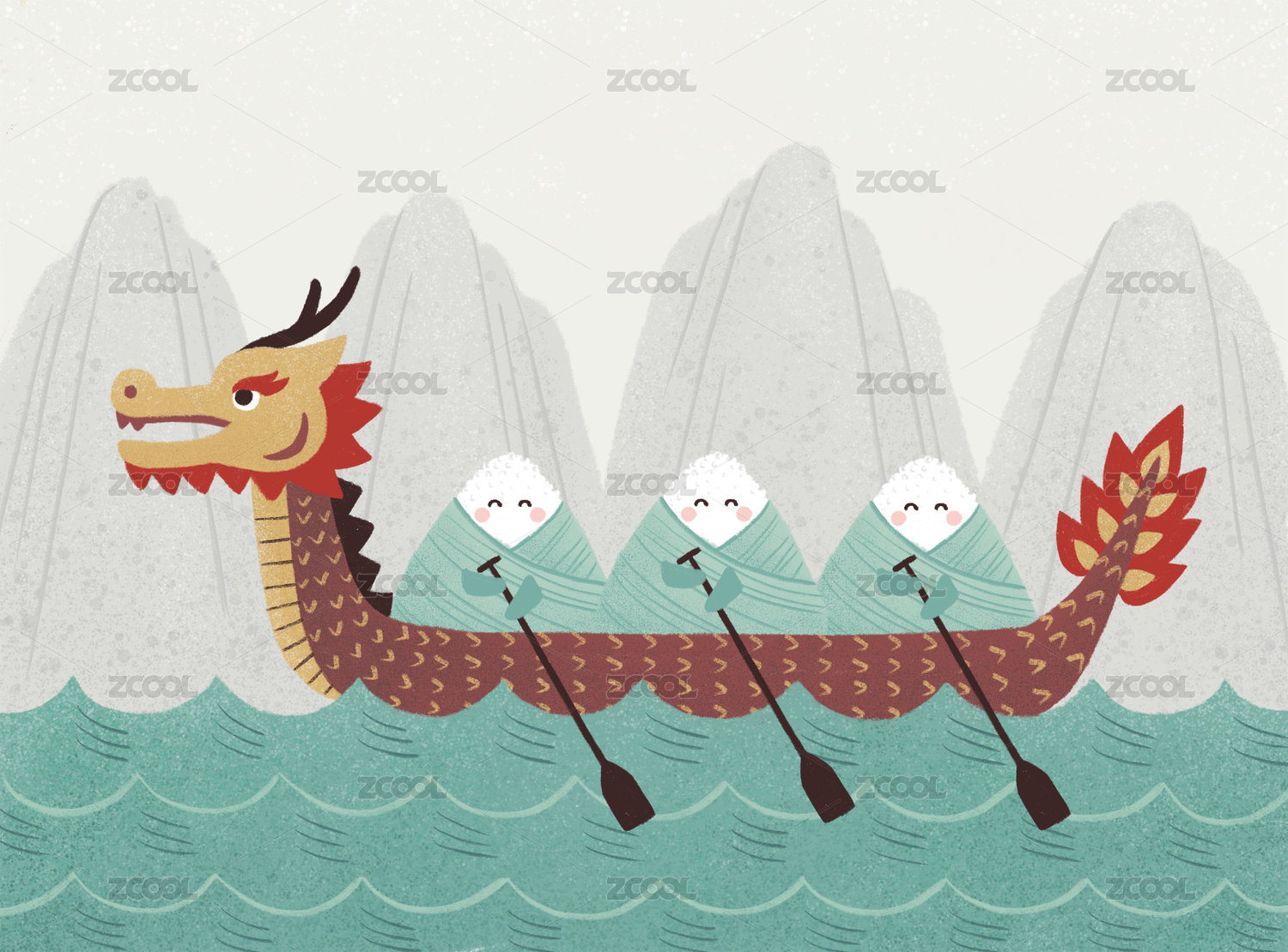 卡通手绘端午节粽子龙舟插图闪屏插画