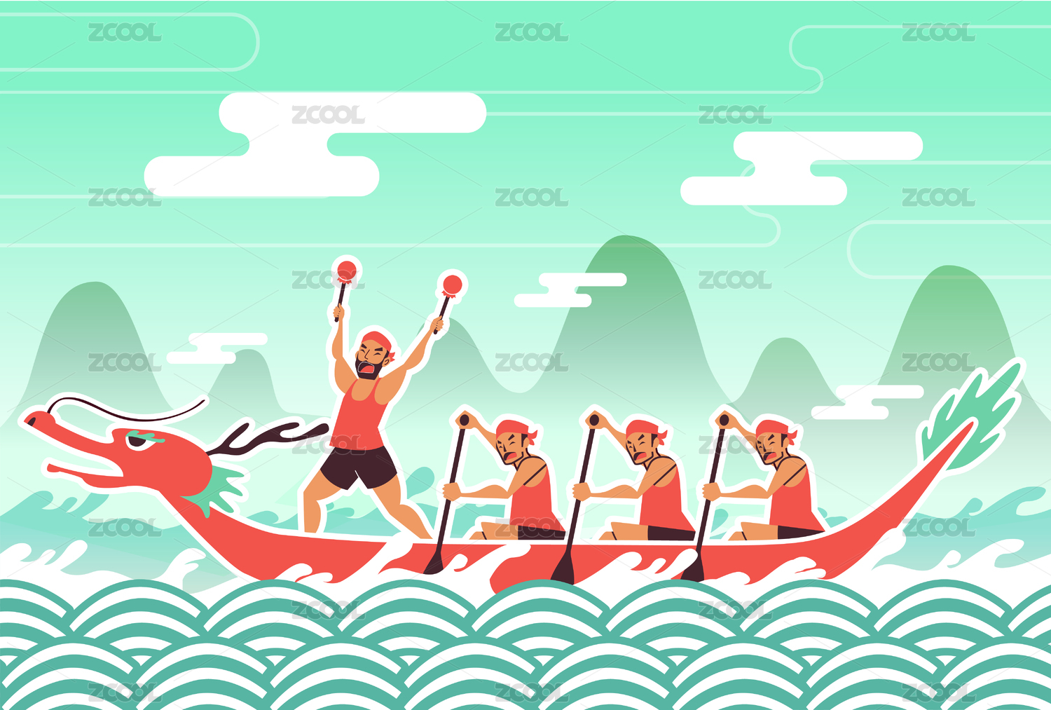 卡通端午节划龙舟传统节日国潮矢量插画素材