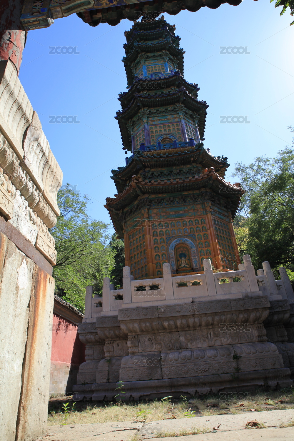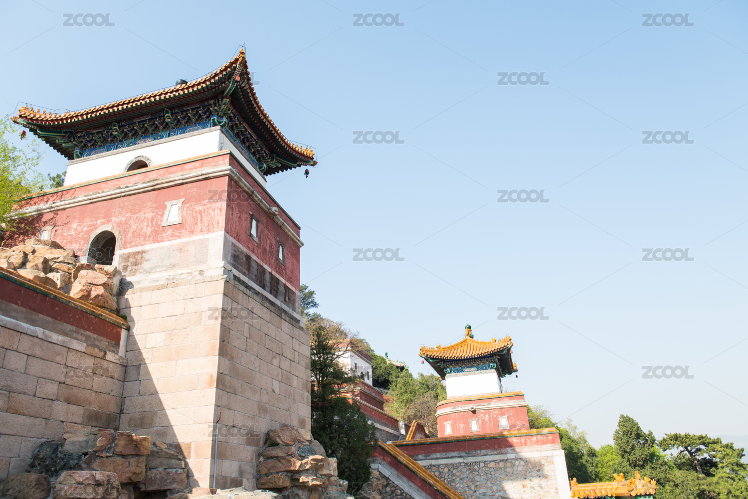北京颐和园万寿山四大部洲藏传寺庙白塔建筑