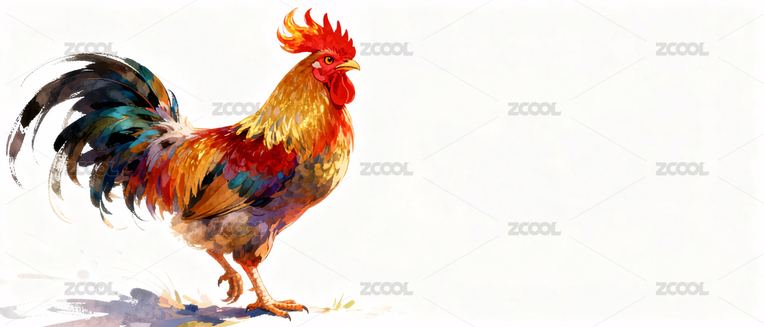 色彩艳丽的单只公鸡形象
