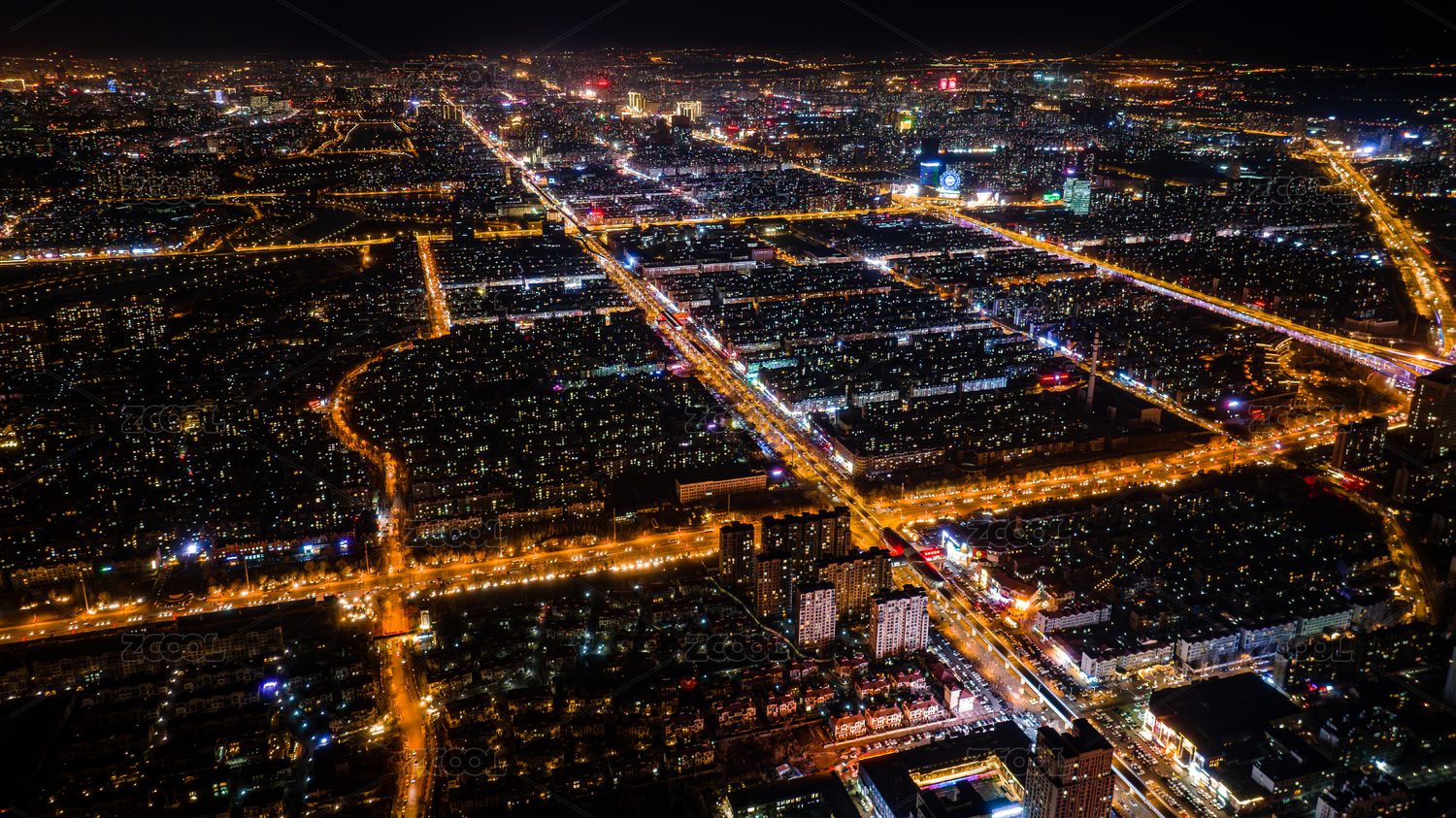 中国黑龙江哈尔滨城市夜晚雪景航拍