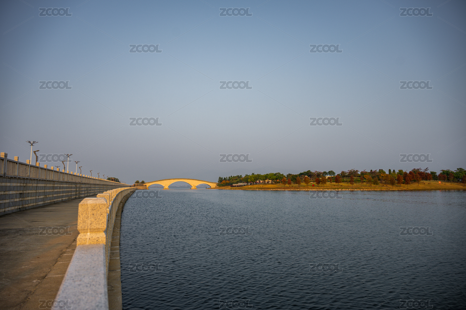 福建厦门马銮湾公园湖畔长廊与拱桥