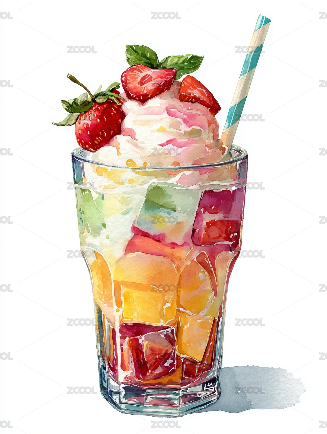 果汁,饮料,玻璃杯,冰块,泡沫,吸管,红色,装饰,清新,甜美