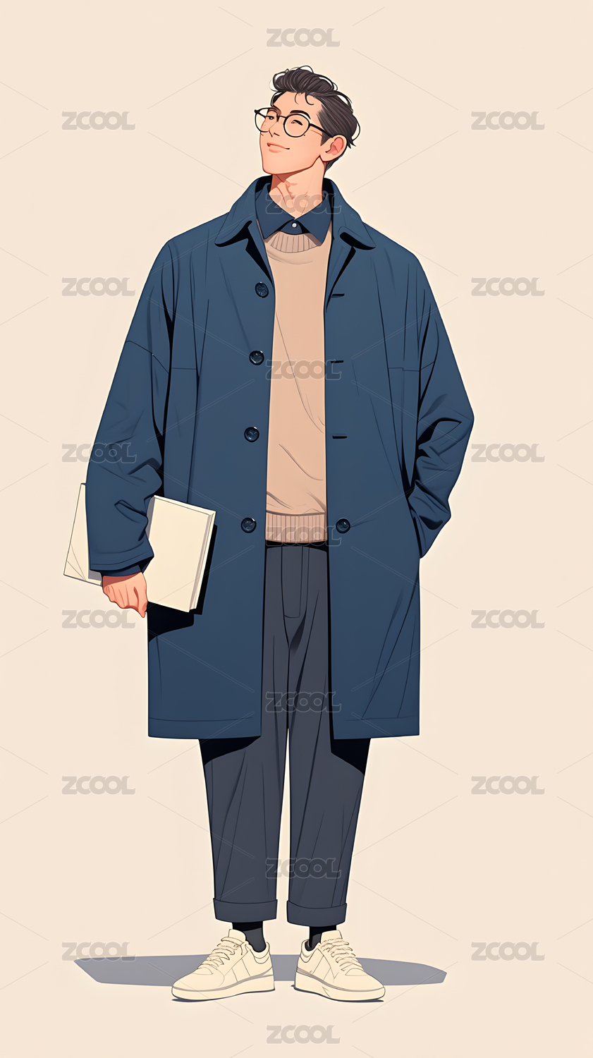 时尚男士冬季穿搭风格插画